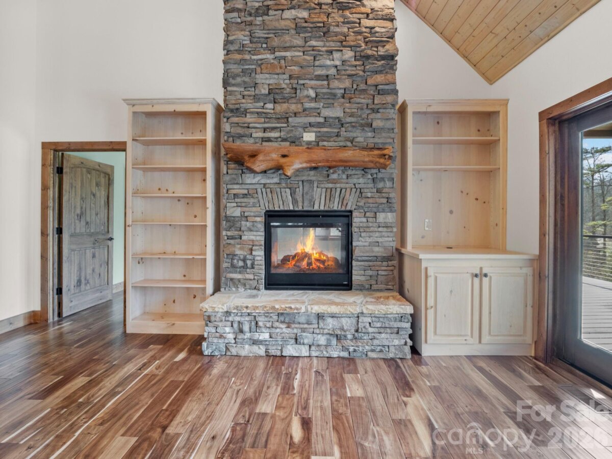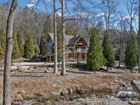 Tucked into a serene setting alongside a gently flowing creek, this stunning craftsman-style retreat seamlessly blends rustic charm with modern luxury. Elevated to capture peaceful views of the surrounding landscape, the home is designed for those who value exceptional outdoor living and sophisticated interior design. The heart of the home is an expansive, open-concept living area where soaring vaulted ceilings clad in natural wood meet rich hardwood floors. The great room is anchored by a commanding floor-to-ceiling stone gas fireplace, beautifully framed by custom built-ins that serve as the home's warm, central focal point. The gourmet kitchen flows effortlessly from the living space, featuring rich wood cabinetry contrasted by sleek black appliances and a massive, freestanding black island topped with granite countertops throughout. A functional walk-in pantry and a dedicated laundry room with sink add to the home’s thoughtful layout. The primary suite is a private sanctuary, echoing the main living area with its stone fireplace and an en-suite bath that emphasizes earthy materials through a massive custom tile shower and dual sinks. Nearby, large sliding glass doors bathe the home in natural light and open to an updated deck. This outdoor oasis, complete with a large portico and exposed timber trusses, provides a sheltered vantage point to enjoy the sights and sounds of nature year-round. The lower level is equally impressive, offering spacious guest bedrooms, full bath and a private office with walkout access to the lower patio. The outdoor experience is further enhanced by a refreshing outdoor shower ideal for pets or a quick rinse after a day on the lake and a stone fire pit, wonderful for crisp evenings by the creek. Completing the home’s functional design is a spacious two-car garage, featuring extensive storage solutions to keep your retreat organized and clutter-free. Beyond the property, the community offers a resort lifestyle with a stunning clubhouse, a fully equipped gym, a heated outdoor saltwater pool and lake access. Whether you’re seeking a full-time residence or a peaceful getaway, this home offers timeless craftsmanship, scenic beauty and exceptional livability. Home features a whole-house generator, new decks and railing, and new HVAC in 2024. Adjacent parcel also available with home: see MLS:4351757