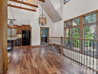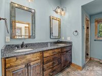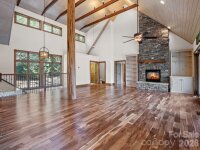 Tucked into a serene setting alongside a gently flowing creek, this stunning craftsman-style retreat seamlessly blends rustic charm with modern luxury. Elevated to capture peaceful views of the surrounding landscape, the home is designed for those who value exceptional outdoor living and sophisticated interior design. The heart of the home is an expansive, open-concept living area where soaring vaulted ceilings clad in natural wood meet rich hardwood floors. The great room is anchored by a commanding floor-to-ceiling stone gas fireplace, beautifully framed by custom built-ins that serve as the home's warm, central focal point. The gourmet kitchen flows effortlessly from the living space, featuring rich wood cabinetry contrasted by sleek black appliances and a massive, freestanding black island topped with granite countertops throughout. A functional walk-in pantry and a dedicated laundry room with sink add to the home’s thoughtful layout. The primary suite is a private sanctuary, echoing the main living area with its stone fireplace and an en-suite bath that emphasizes earthy materials through a massive custom tile shower and dual sinks. Nearby, large sliding glass doors bathe the home in natural light and open to an updated deck. This outdoor oasis, complete with a large portico and exposed timber trusses, provides a sheltered vantage point to enjoy sights and sounds of nature year-round. The lower level is equally impressive, offering spacious guest bedrooms, full bath and a private office with walk-out access to the lower patio. The outdoor experience is further enhanced by a refreshing outdoor shower ideal for pets or a quick rinse after a day on the lake and a stone fire pit, ideal for crisp evenings by the creek. Completing the home’s functional design is a spacious two-car garage, featuring extensive storage solutions to keep your retreat organized and clutter-free. Beyond the property, the community offers a resort lifestyle with a stunning clubhouse, a fully equipped gym, a heated outdoor saltwater pool and lake access. Whether you’re seeking a full-time residence or a peaceful getaway, this home offers timeless craftsmanship, scenic beauty and exceptional livability. Home features a whole-house generator, new decks and railing, and new HVAC in 2024. Adjacent lot included for extra privacy or investment opportunity!