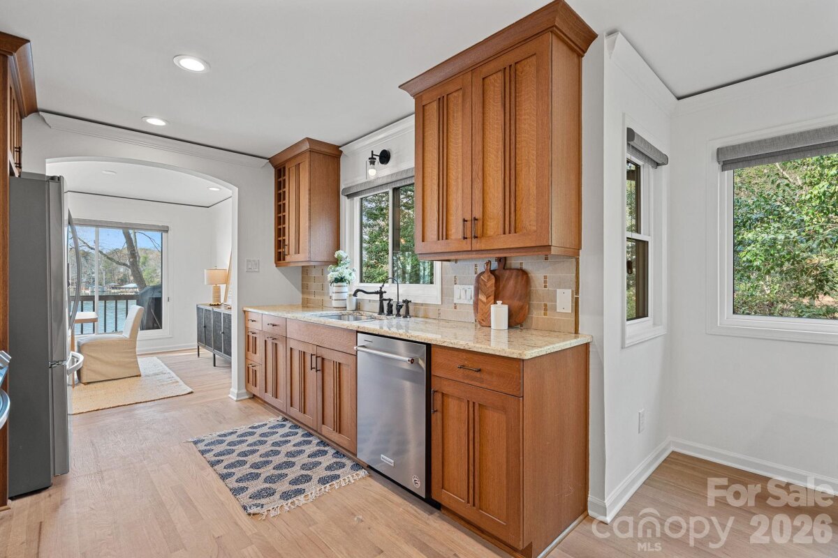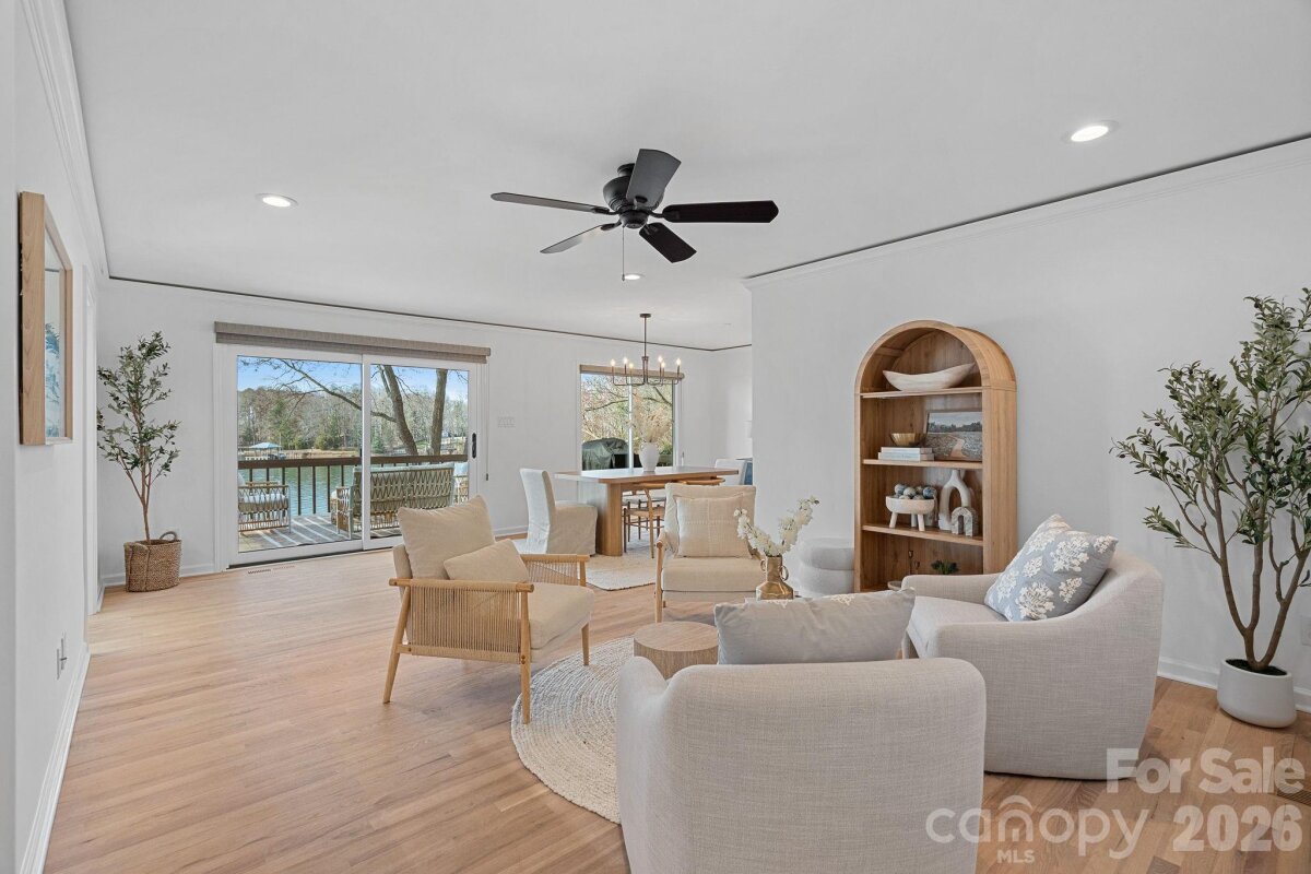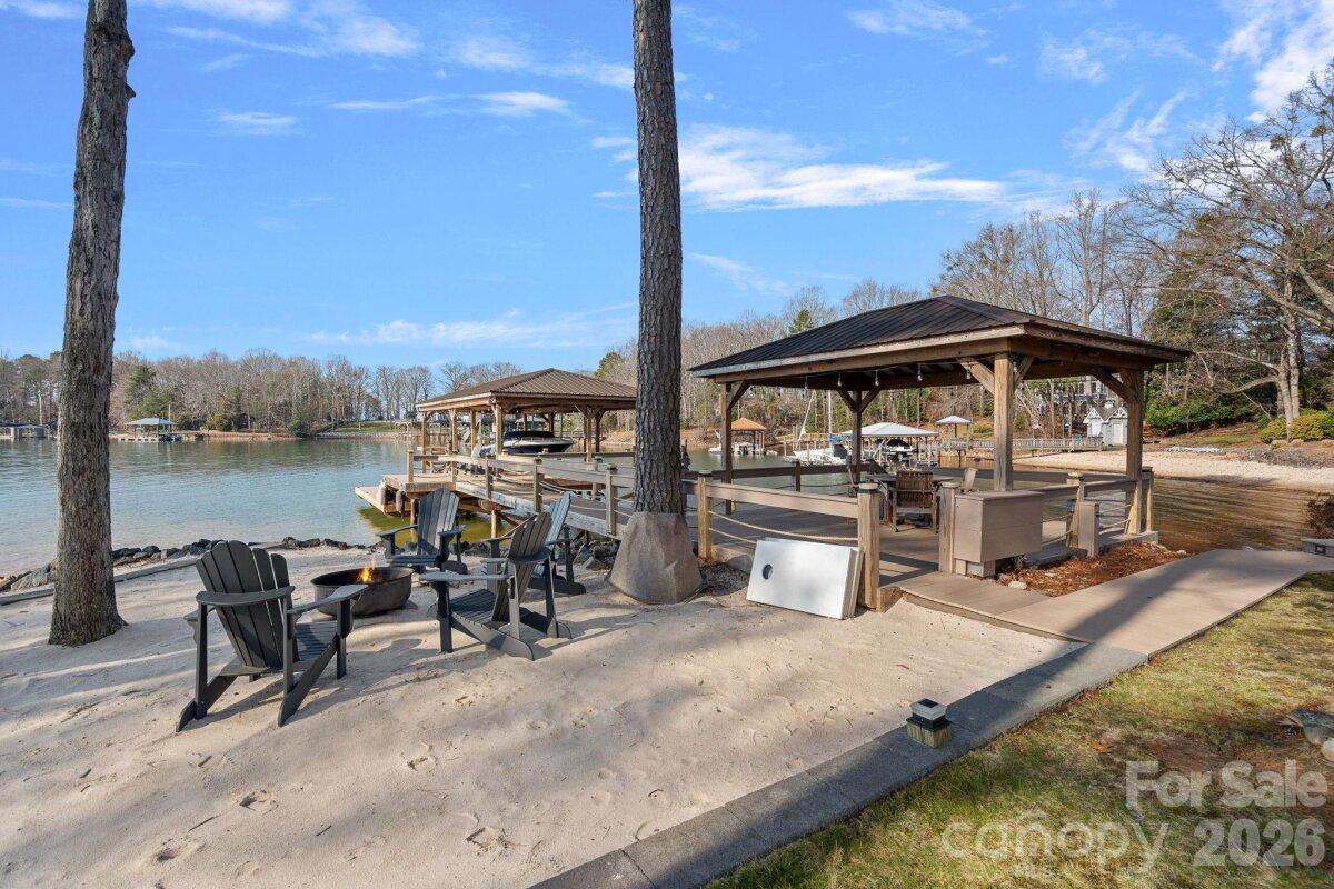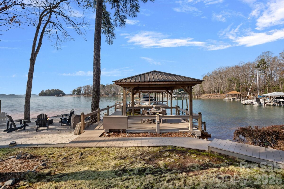 Prime location offering the ultimate in privacy and beauty along the pristine banks of Lake Norman with over 190' of shoreline, long range sunset views, a new private covered dock and sandy beaches! This rare gem is now available in one of the most desirable No HOA pockets on Lake Norman just beyond The Point. Designed for truly enjoying the lake and its natural splendor, this is the perfect one level "right size" home featuring a new stationary dock with two tier infinity deck design and large covered entertaining pavilion, natural sandy beaches and year round deep water. The sprawling grounds feel like a park and pop with color 3 seasons of the year making this the ideal setting for relaxing, boating or taking in the sunset views. This solid 3 BR 2 1/2 BA modern ranch with two car garage has many quality upgrades and a wonderful floorplan for effortless lake living while still offering excellent potential to expand if desired. Many owner improvements include refinished hardwood flooring, windows, sliders, HVAC with whole house steam humidifier, water filtration system, fresh paint, updated lighting, plus the addition of an RV pad offering room for guests or expansion if buyer chooses. This special home is the perfect primary residence or weekender, and sure to inspire a lifetime of cherished memories!