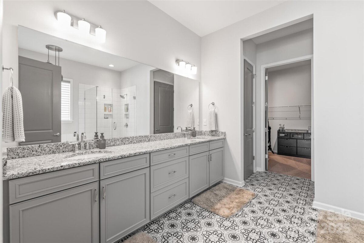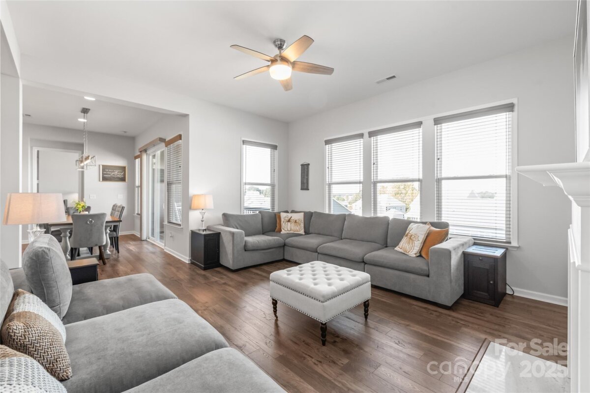 Outstanding home in Mooresville's Reid's Cove neighborhood, with sunset views of Lake Norman! Excellent, open floor plan with 5 bedrooms & 5.5 baths. Very well-maintained home and shows like a model. Features amazing kitchen with a spacious island, upgraded soft-close cabinets with lots of drawers, gas cooktop, stainless hood, and an elegant tile back splash. Three bedrooms on the main floor, including the primary suite! You'll have tons of room, with over 4,700 heated square feet, including the finished basement. (Basement has rough plumbing for wet bar or kitchenette.) Excellent set up for multi-generational living. 2023 construction. Enjoy beautiful sunset views from the triple-decker porch out back! Tesla Level 2 Car charger available in garage. Dual Rinnai tankless hot water heater, home theater pre-wire in basement. 3-zone HVAC. Gigabit internet / ethernet. Reid’s Cove amenities include a resort-style pool, lit pickleball court, playground, Lake Norman access & kayak racks. Take a paddle on Lake Norman and visit local restaurants for lunch or dinner. Excellent schools. Location offers easy access to shopping, restaurants, and entertainment in Mooresville and Davidson.