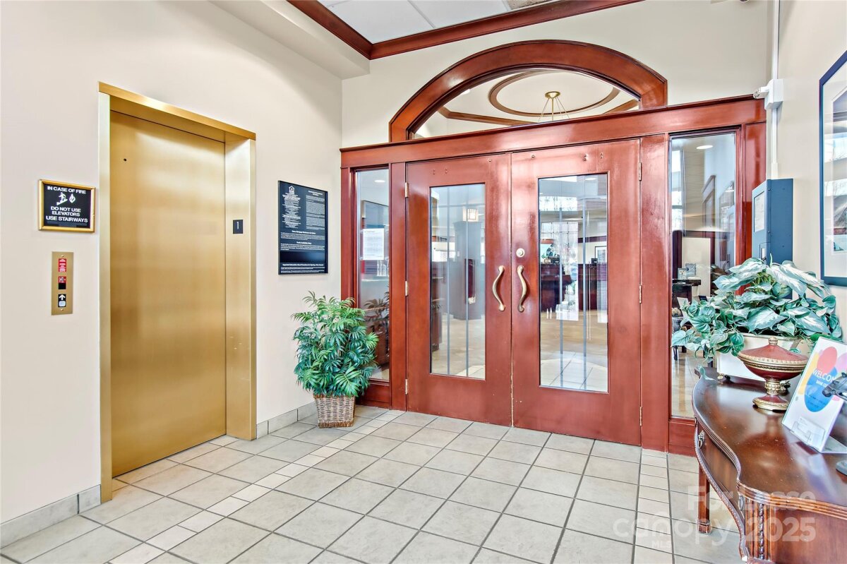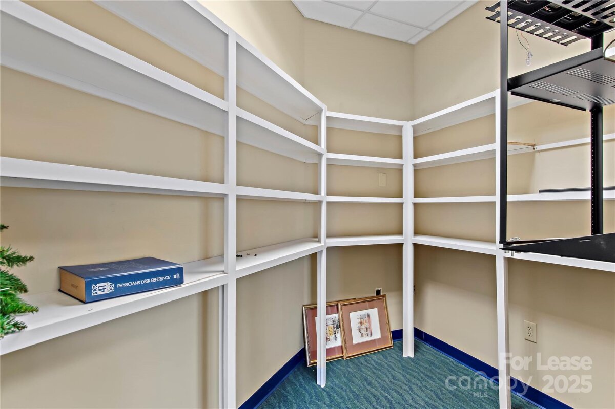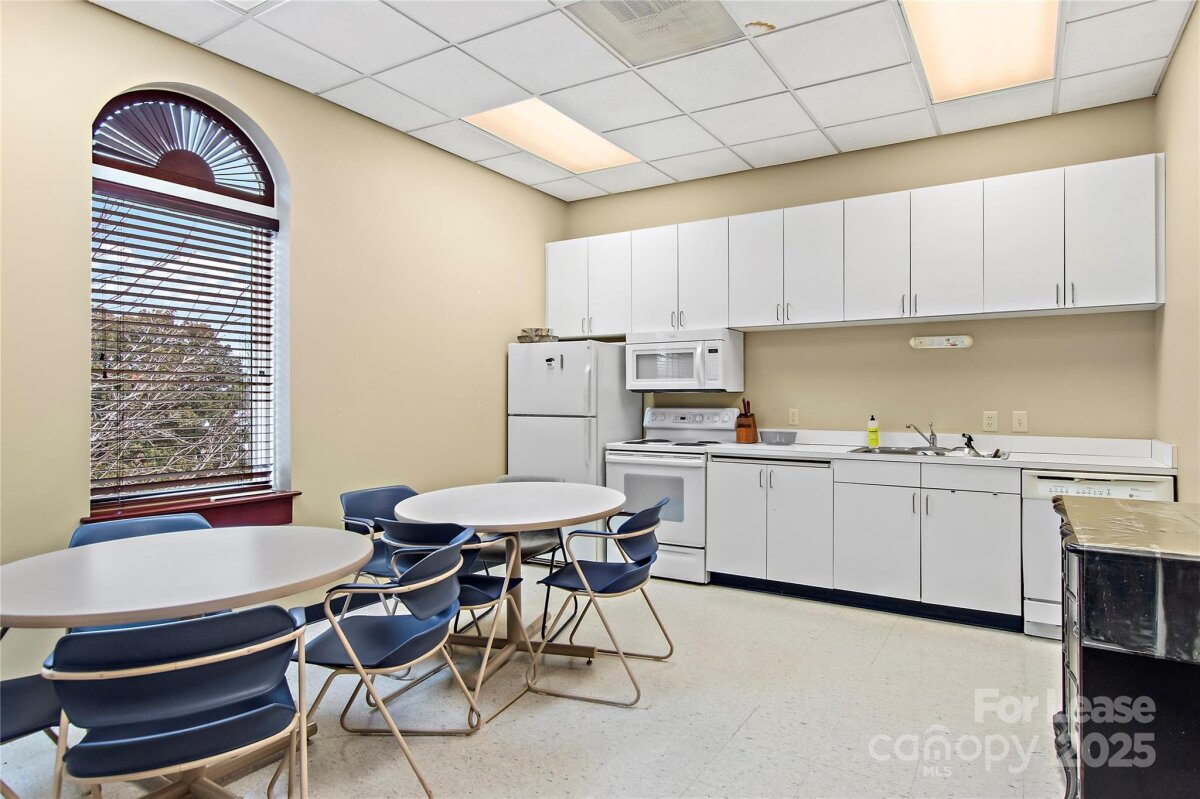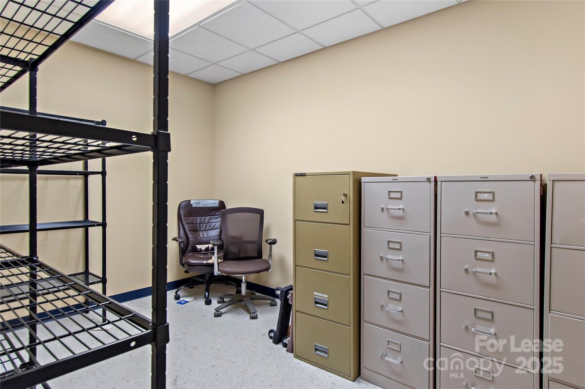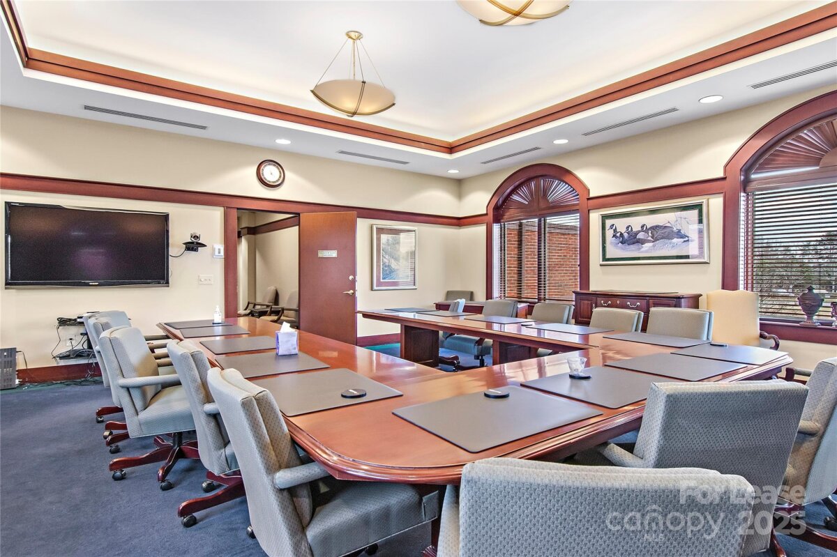 Available for Lease. This office suite is upstairs in Bank OZK serviced by an elevator in the entry. It offers 9 offices, 5 exterior with windows on the right side and two window offices on the left side and two interior offices. There are additional rooms that could be used for reception, waiting and storage. The conference and break room are shared spaces with the bank and there is a patio outside the conference room. The space can also be accessed from a back or front stairwell. Furniture can remain. The floor plan is conducive to two independent companies sharing the space.
