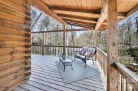 Imagine waking up to the quiet serenity of the mountains, stepping out onto your expansive wraparound porch to enjoy a morning cup of coffee surrounded by nature. Tucked away on 1.47 private acres in the gated Riverbend community, this inviting 1.5-story log home is designed for comfort, connection, and the ultimate indoor-outdoor lifestyle. Inside, the living room's gas log fireplace creates a cozy centerpiece for gatherings, while the full, unfinished heated daylight basement offers incredible potential. Whether you envision a high-capacity bunk room to maximize rental income, a sprawling game room, or a private home gym, this massive space is a blank canvas ready for your touch. The adventure continues just minutes away at Mirror Lake, where you can spend your days fishing, kayaking, or lounging on the private beach. Explore the community’s waterfall swimming holes and hiking trails, or spend your evenings discovering the charm of nearby Chimney Rock Village and the renowned Tryon International Equestrian Center. With a fully fenced yard and firepit perfect for starlit nights, this home provides the space to gather, unwind, and make lasting memories. Whether you're seeking a proven investment opportunity or a peaceful escape in the heart of WNC, this log home delivers an exceptional lifestyle in one of the area’s most sought-after communities. Offered fully furnished, making this a truly turn-key mountain retreat.