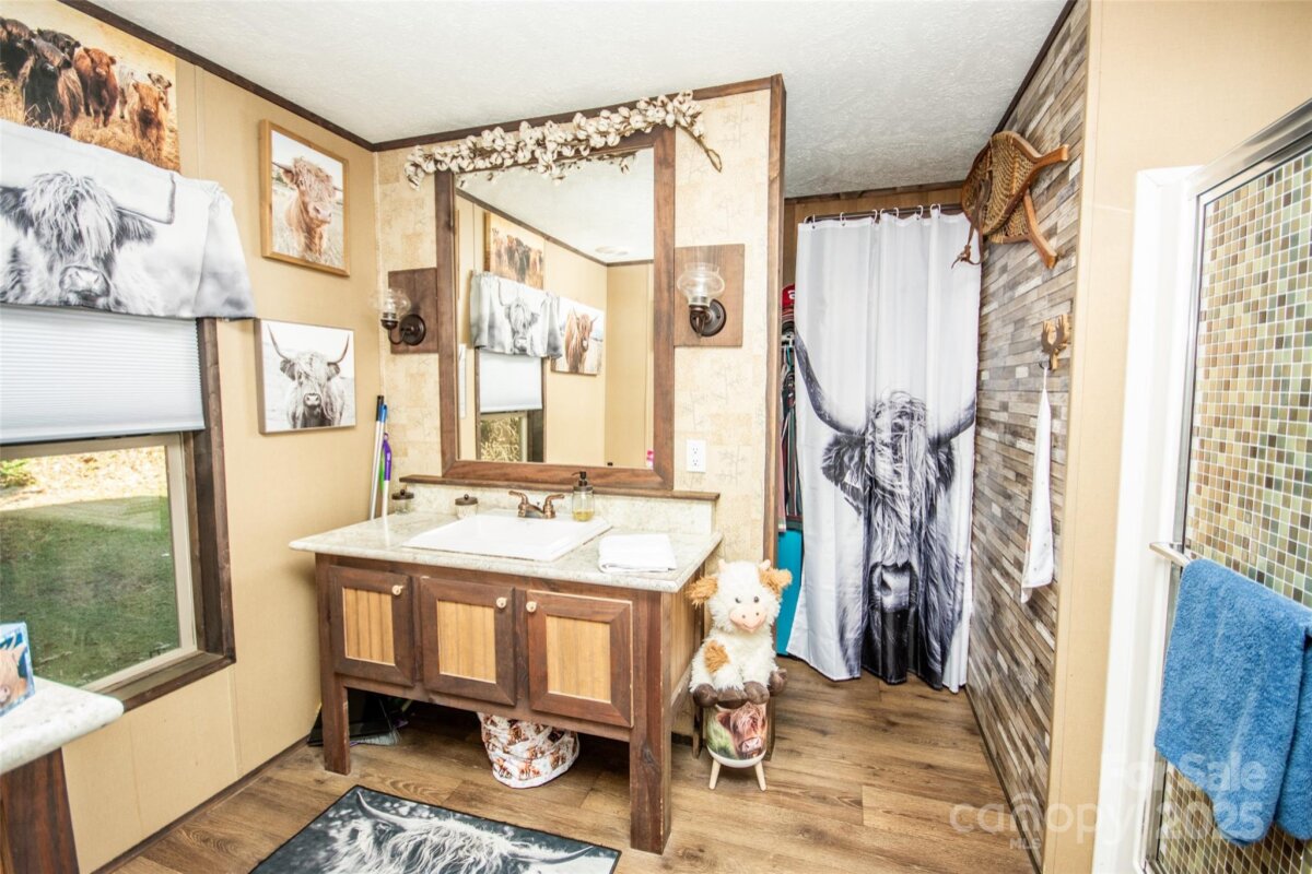 Welcome to this 2015 3-bedroom, 2-bath home privately set near the end of a quiet cul-de-sac in a popular neighborhood. Located between downtown Mooresville and Troutman, this property offers a peaceful, natural setting featuring underground utilities, and is just minutes from I-77, shopping, and top-rated schools. Perched on a knoll that is accessed by a concrete driveway and sidewalk, you’ll love the sunsets from the front porch. Other great outdoor features include a flat backyard surrounded by trees, a creek, a fire pit, a greenhouse, raised vegetable beds, and a storage building with a lean-to for mower storage. The yard is a gardener’s dream—featuring apple, cherry, plum, peach, and fig trees, muscadine vines, roses, azaleas, and crepe myrtle trees lining the property. Inside, the home offers a split-bedroom floor plan with an open-concept den, kitchen, and living room. If you like to cook or entertain, you’ll love the huge island with an eat-up bar, pull-out butcher block in the cabinet beside the fridge, custom vent hood, a deep bibbed sink, and a goose neck faucet. There is plenty of cabinet and counter space, plus a large pantry and separate laundry room. Appliances are included, and the washer and dryer can remain with an acceptable offer. The owner’s suite features a spacious ensuite bathroom with custom vanity, shower, and walk-in closet. Each bedroom, the living room, and the den have ceiling fans. This home has been carefully maintained with service records to back it up. These include biannual HVAC service, new A/C coil (2025), new well expansion tank and pressure valve (2024), new LVP floors (2022), and a septic pump within the last 3 years. If you’ve been dreaming of a move-in-ready home surrounded by nature but close to everything Lake Norman offers, this is the one.