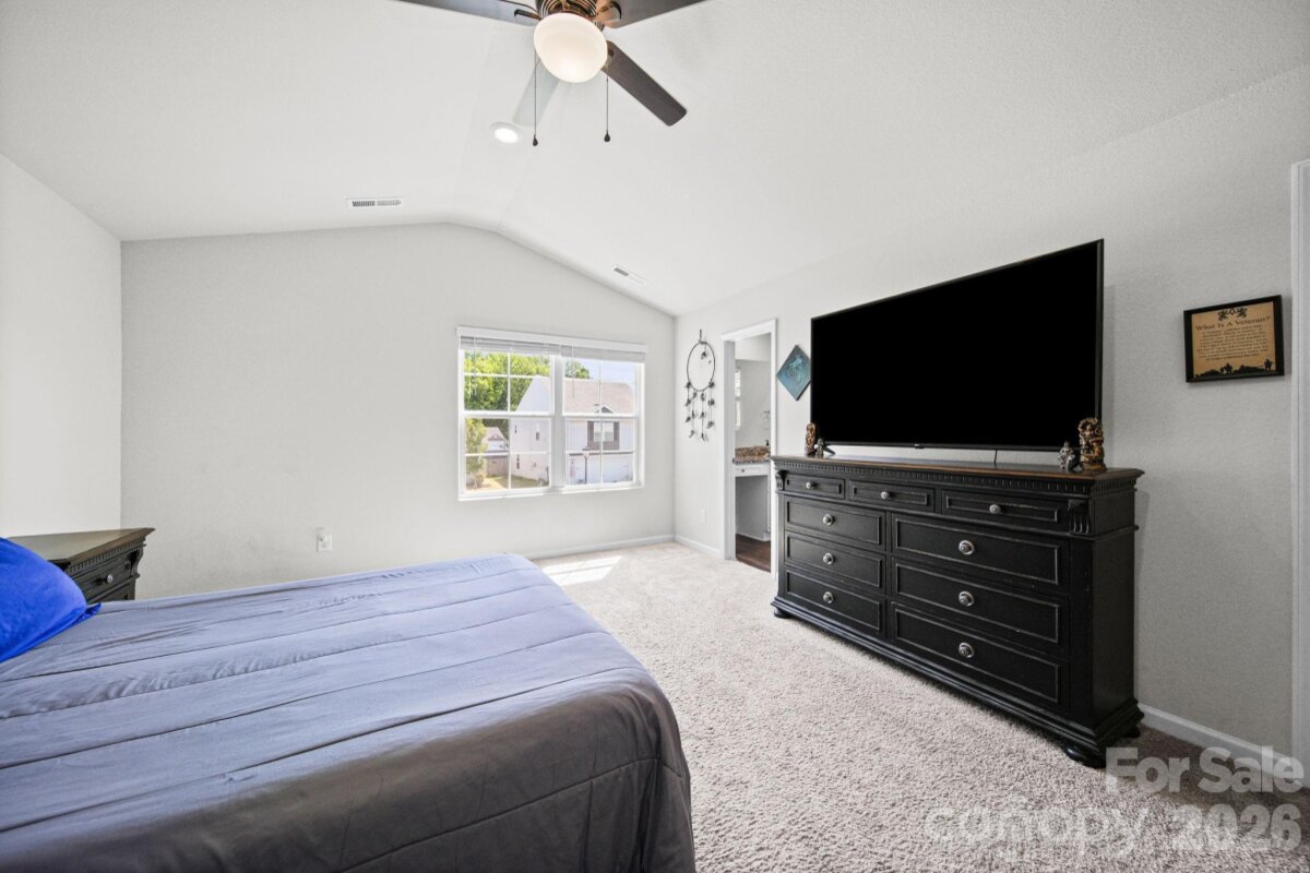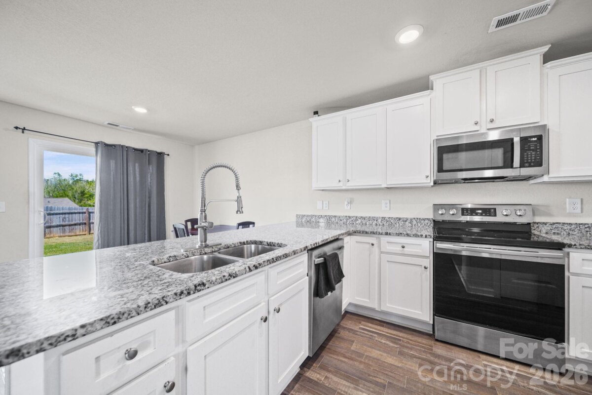 Discover modern living in Village at Granite with this 2020-built 3 bedroom, 2.5 bathroom home perfectly positioned on a quiet cul-de-sac. A welcoming front porch opens to a defined foyer leading into the open concept living area, designed for gathering and flow. The kitchen impresses with white cabinets, granite counters, island, pantry, and stainless appliances. Sliding doors open to a privacy-fenced backyard, offering space for outdoor dining, gardening, or entertaining. Upstairs, the impressive primary retreat showcases a vaulted ceiling, huge walk-in closet, and ensuite with granite countertop and step-in shower. Two additional bedrooms on the upper level share a full hall bath. Laundry is conveniently located upstairs with the bedrooms. Attached two-car garage with long concrete drive provides added parking. Community amenities include sidewalks, dog park, and playground. Convenient to Salisbury and Granite Quarry, this move-in ready home blends comfort with modern style.
