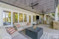 This pristine thoughtfully designed three bedroom plus flex room waterfront retreat offers beautiful year round views from multiple levels, where morning light and sunset reflections become part of everyday living. The main level features an open concept design anchored by a chef’s kitchen with high end appliances and a bonus dedicated beverage refrigerator and freezer, wine refrigerator, and coveted Miele coffee system. The primary suite on the main level is a true sanctuary with a spa like shower, soaking tub, and private balcony access to enjoy those peaceful mornings and glowing sunsets.The lower level offers two additional ensuite bedrooms with spacious walk in closets, a second living area with wet bar, and direct access to the outdoor living space. Outside, a newly converted saltwater infinity pool overlooks the water, complemented by an outdoor kitchen, bar and dining area, creating a private resort atmosphere. Meticulously maintained with many very recent improvements, this home comes with a new septic system, new buried propane tank, new water softener, new gutter guards, new under deck ceiling, updated landscaping, new exterior doors, new lower level luxury vinyl plank flooring, and is freshly painted throughout. Located off Brawley School Road for convenience this beautiful home’s location is the end of a shorter cove for quick main lake access and better dock preservation, all set on a wonderful 1.66 acre lot with no HOA.
