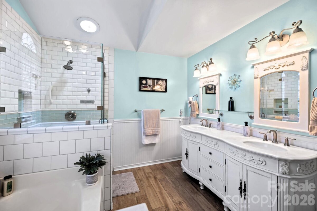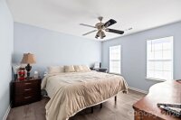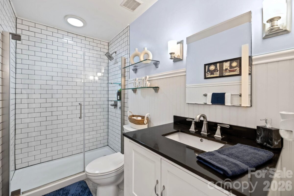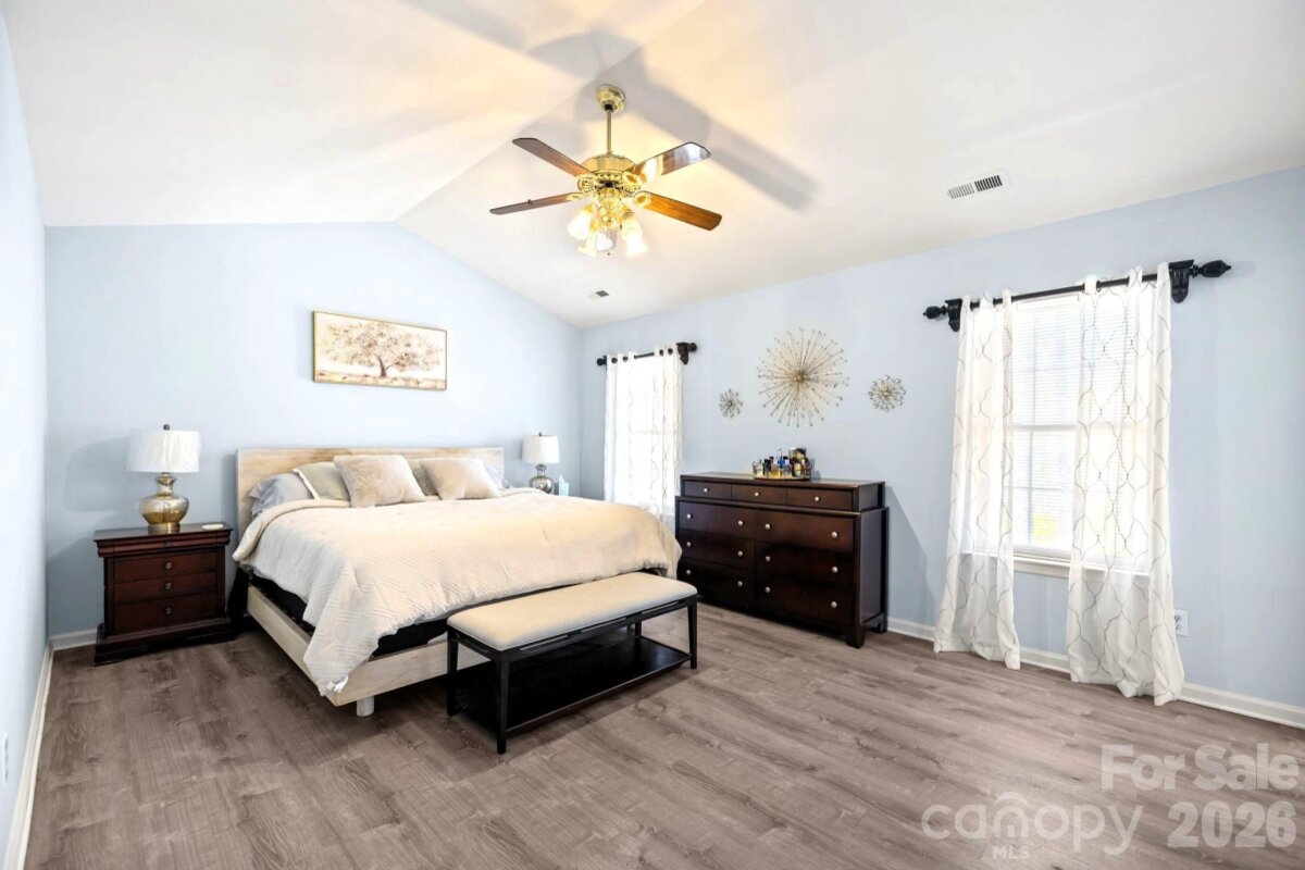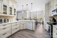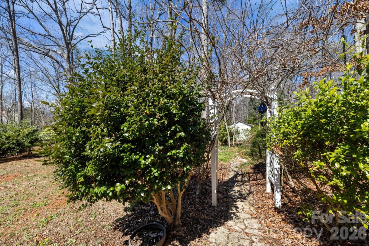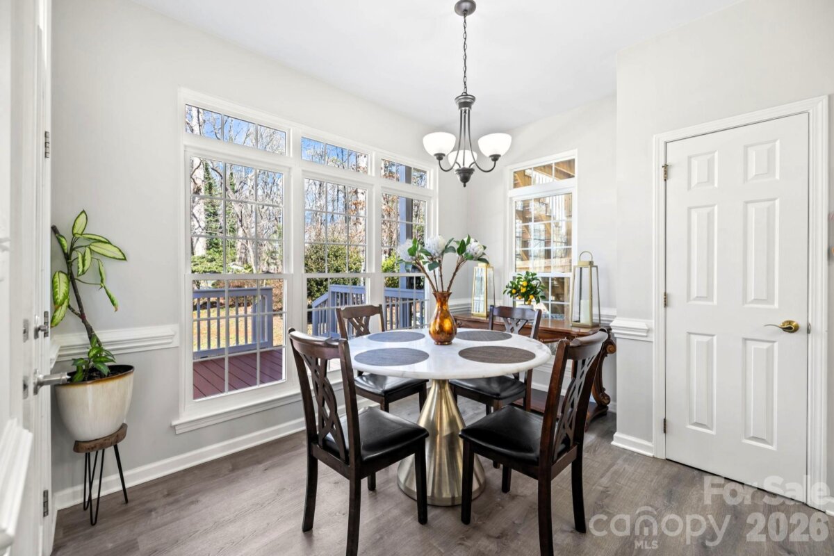 Beautiful 2-story home in Steele Creek’s popular Wiltshire Manor, a charming community with sidewalks, streetlights, mature trees, and spacious lots. This well-maintained home features numerous updates and thoughtful improvements throughout. Enjoy new modern flooring on both levels and the stairs, smooth ceilings throughout (popcorn ceilings removed), and a widened driveway providing additional parking space. The inviting floorplan offers great versatility, including a formal dining room, a formal living room currently used as a main-level office, and a large family room filled with natural light and anchored by a real wood-burning fireplace with classic white mantel. The deluxe kitchen features high end cabinetry with upper glass panels, elegant quartz counter tops, flowing seamlessly into the breakfast area and family room—perfect for everyday living and entertaining. Upstairs you’ll find the primary suite with cathedral ceiling and renovated bath, along with three additional spacious bedrooms, all with walk-in closets. The fourth bedroom offers direct access to a private upper-level deck, complete with stairs leading to the backyard—an ideal retreat or guest space. Additional upgrades include Pella windows, updated bathrooms, and an elegant garage door. Outdoor living shines with a two-level deck across the back of the home, overlooking a backyard gardener’s oasis featuring a small greenhouse, shed, bridge, and firepit. The property sits at the end of a short street and backs to a wooded natural area for added privacy. Relax on the charming front porch large enough for rocking chairs. Conveniently located just minutes from Carowinds, shopping, dining, outlets, Interstate 485, Charlotte Douglas International Airport, and Uptown Charlotte.