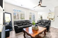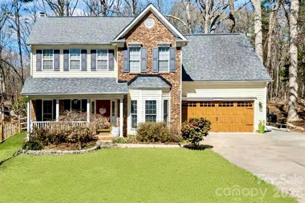 Beautifully updated 2-story home in the sought-after Wiltshire Manor community in Steele Creek. This move-in ready home is filled with thoughtful upgrades and stylish finishes throughout. Enjoy new modern flooring on both levels and stairs, smooth ceilings (popcorn removed), and an expanded driveway for additional parking. The versatile floorplan offers both formal and casual living spaces, including a formal dining room and a formal living room currently used as a main-level office. The spacious family room is filled with natural light and features a cozy, real wood-burning fireplace with a classic white mantel—perfect for gathering and relaxing. The beautifully updated kitchen showcases high-end cabinetry with glass accents, elegant quartz countertops, and flows seamlessly into the breakfast area and family room, making it ideal for entertaining. Upstairs, the primary suite impresses with a cathedral ceiling and a renovated ensuite bath. Three additional generously sized bedrooms each include walk-in closets. The fourth bedroom offers a unique bonus—private access to an upper-level deck with stairs leading to the backyard, creating the perfect guest retreat, office, or flex space. Additional upgrades include newer windows, updated bathrooms, and a stylish garage door. Outdoor living is exceptional with a two-level deck spanning the back of the home, overlooking a truly special backyard. This gardener’s oasis is filled with lush, beautiful plants and flowers that are self-maintaining, along with a greenhouse, shed, charming bridge, and firepit—creating a peaceful, park-like setting with minimal upkeep. Tucked at the end of a quiet street and backing to a wooded natural area, this home offers privacy and tranquility. Enjoy relaxing on the welcoming front porch, perfect for rocking chairs. Conveniently located just minutes from Carowinds, shopping, dining, outlets, I-485, Charlotte Douglas International Airport, and Uptown Charlotte—this home truly has it all!
