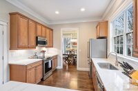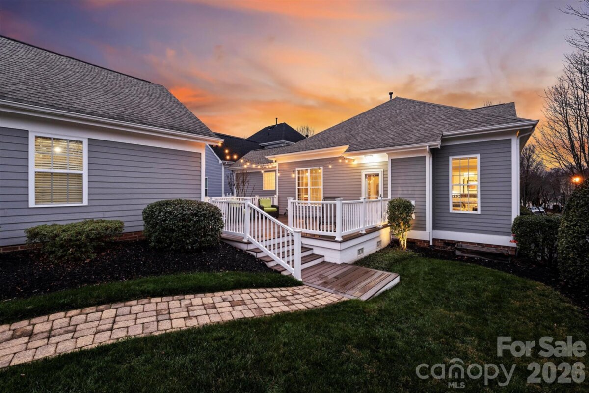 This is beautiful Charleston style cottage home in the highly sought out neighborhood of Montheith Park. It has a unique 1.5 story floor plan with all of the bedrooms on the main floor and a flex space, which can be used as a 4th bedroom, 2nd office or a gym. It's positioned on a corner lot with a charming, fenced in back yard surrounded by privacy hedges and a large, updated 410 sqft. trex deck. New HVAC in 2025, beautiful new fixtures and ceiling fans, new carpets in bedrooms and loft, new Kohler commodes, a new custom Thermatru front door, back door, new Anderson storm doors, new custom blinds and new paint. The house sits across from Dutch Fork park and dog park. Enjoy beautiful sunsets on the beautiful front porch. Enjoy grilling out or reading a book with a glass of wine on the large, private, back patio. Take an evening stroll on the walking path. Conveniently located to shopping, access to 77, Old Statesville (NC 115), Birkdale Village. Come see this gem! Agent owned.