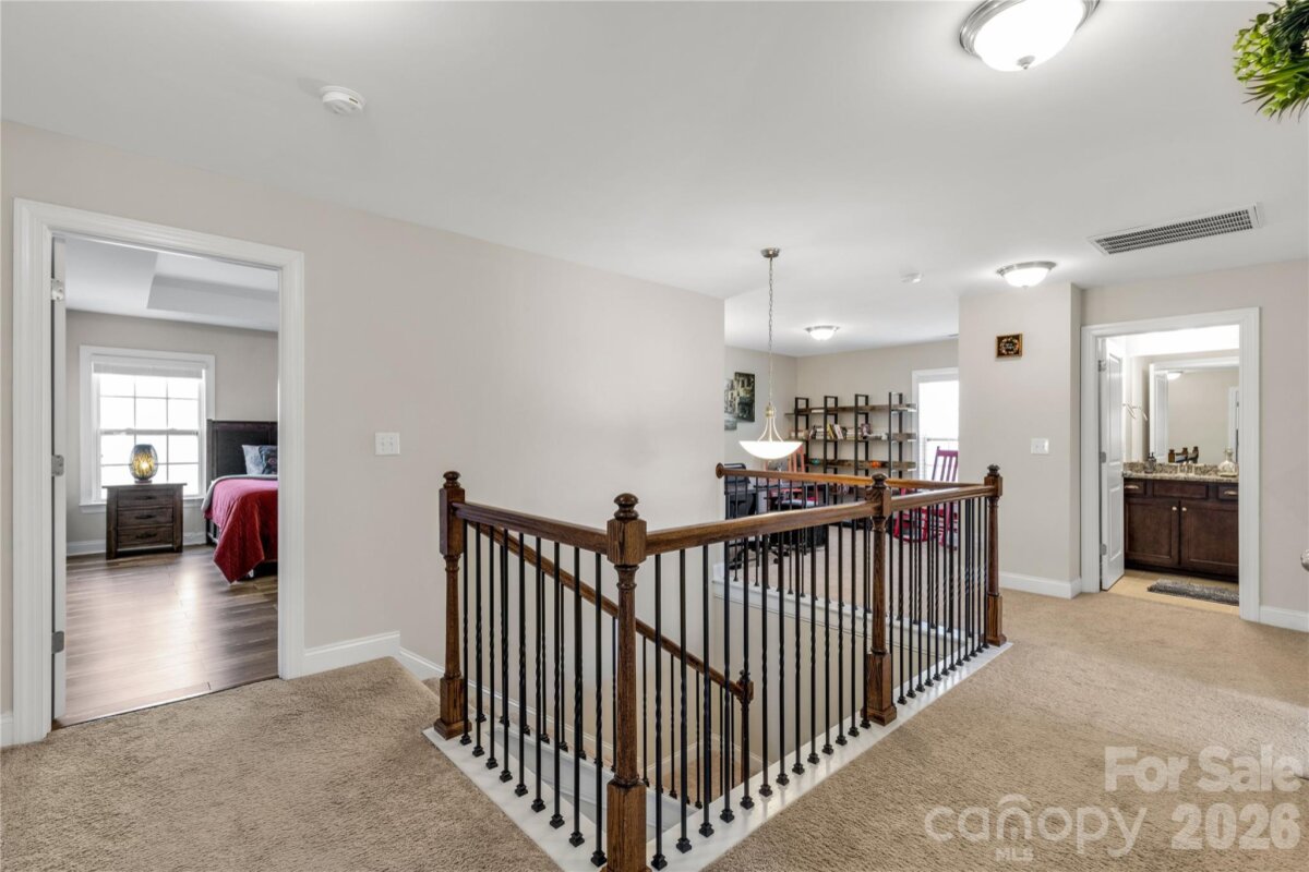 Spacious 4-bedroom, 4-bath home located in the desirable Forest Grove community in Fort Mill. This two-story home offers over 3,000 square feet of living space and features an open floor plan designed for comfortable everyday living and entertaining. The gourmet kitchen includes granite countertops, double ovens, gas cooktop, pantry, and plenty of cabinet space. The main level features beautiful hardwood floors, a bedroom and full bath, and a welcoming family room with fireplace. Upstairs you’ll find a generous primary suite with tray ceiling and walk-in closet, along with additional bedrooms, a loft area, and convenient upper-level laundry. Situated on a wooded lot, this home offers both privacy and charm. Forest Grove residents enjoy community amenities including a pool, sidewalks, and street lights. Located in the highly rated Fort Mill school district with easy access to shopping, dining, and major commuting routes.