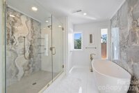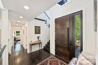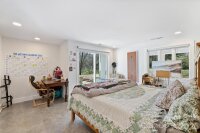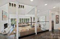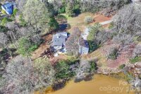 Perched on 14.8 acres you find the amazing Architectural Modern Home with Exceptional Light and Open Design. This striking modern residence delivers a rare blend of architectural style, natural light, and open concept living. Expansive windows and soaring ceilings create bright spaces throughout the home, showcasing refined design and premium finishes. Three porches with wood floors and railings to relax and unwind. The new expanded chef-inspired kitchen featuring Bertazzoni appliances, full sized island, and a wine fridge. Open living and dining areas offer two-story ceiling heights.The primary suite has a vaulted ceiling with skylights, a Juliet balcony, and a spa-inspired bathroom.. a must see. Additional highlights: the lower level updated apartment includes a bedroom, full bathroom, kitchen, living room with fireplace, laundry room with extra fridge and an outdoor patio overlooking the pond plus storage areas. The two car garage has a large room above with heat and air. A perfect work room or bedroom. New roof, beautiful new hardwood floors, a water filtration system, new front door and copper accents. Attic space is air controlled. The Purser-Hulsey Park and walking trails are very close. Convenient to 485, stores, shops and 25 minutes to uptown Charlotte.