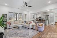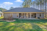 Tucked away on a private, wooded 1.02-acre homesite, this beautifully maintained one-story home delivers the perfect blend of modern finishes, thoughtful upgrades, and the kind of storage every buyer is hoping for. Built in 2021, the layout is designed for real life, featuring a true split-bedroom floor plan with a dedicated primary wing for added privacy. Inside, the open-concept living space is bright and welcoming, with durable luxury vinyl plank flooring, recessed lighting, and an easy flow from the living room into the kitchen and dining area. The kitchen is a standout with a large island, granite countertops, grey cabinetry, stainless steel appliances, and plenty of workspace for cooking and entertaining. Skylights have been installed to allow for extra natural light. The primary suite is spacious and set apart from the secondary bedrooms, offering a peaceful retreat complete with a walk-in closet and an ensuite bath featuring a double vanity and upgraded finishes. Additional bedrooms are generously sized and share a full bath, making the split layout ideal for guests, kids, or a home office setup. Outside, enjoy quiet mornings on the covered front porch and evenings on the back patio, surrounded by tall trees and a natural setting. A two-car attached garage, concrete driveway, and multiple storage options throughout the home make day-to-day living as convenient as it is comfortable. With well and septic, no HOA, and easy access to surrounding areas, this property offers the space and freedom today’s buyers are searching for.