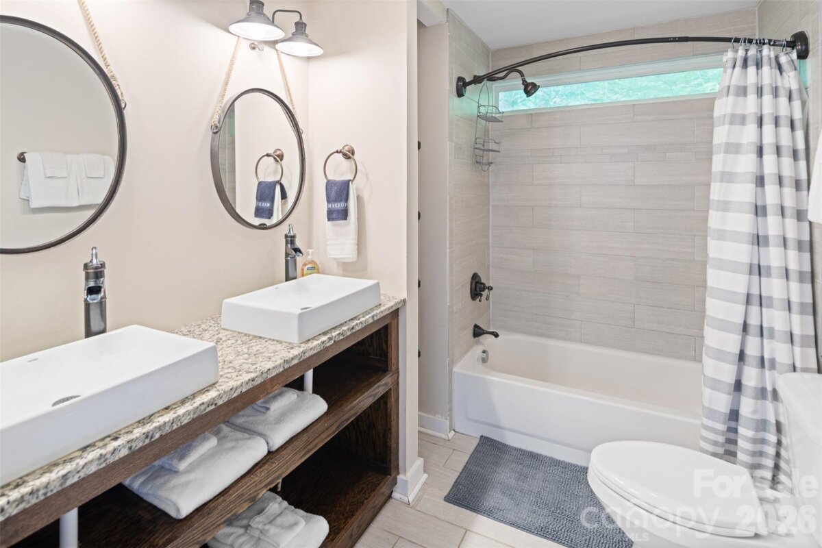 Take a deep breath and come enjoy this ample space for people and good times at this home that includes 2 additional rooms for flex space, additional rental income, or to spread out. Peace, quiet, and the sounds of nature are located along Howard's Creek. Just 5 min from Boone and App State! The perfect combination of serenity and convenience. Nestled among lush trees, enjoy serene privacy while being just minutes from downtown Boone. The spacious living area features a stone fireplace, and the modern kitchen is just right for entertaining. Step outside to a large deck with stunning views, great for relaxing or hosting. Don’t miss the extra-large hot tub to enjoy those starry evenings or sit by the custom fire pit. This home comes fully furnished with tasteful decor and plenty of space for time with friends and family.