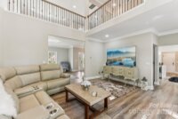 This beautifully designed two-story home offers four bedrooms and four bathrooms, combining modern comfort with thoughtful functionality. The heart of the home is a sleek, contemporary kitchen featuring quartz countertops, stainless steel appliances, stylish backsplash tile, and modern hardware throughout. The main-level primary suite provides a true retreat, complete with a luxurious en-suite bathroom and an expansive walk-in closet. The laundry room and powder room are conveniently located between the kitchen and the entry from the attached two-car side-load garage—making daily routines seamless and efficient. Upstairs, you'll find well-appointed secondary bathrooms with tile, vanities, and tub/shower combinations. A spacious open loft overlooks the second-story living room, perfect for lounging or study space. A large bonus/playroom with large skylight offers versatile options for a quiet home office, media room, or entertainment space. Additional highlights include: Neutral paint tones and low-maintenance luxury vinyl plank (LVP) flooring throughout the main level, modern light fixtures and contemporary hardware, two staircases for added convenience and private access between living areas, custom accent wall in the dining room/foyer area, and an expansive yard fully enclosed with wood fencing—ideal for outdoor activities and entertaining. This home seamlessly blends space, style, and smart design—perfect for entertaining, or simply enjoying everyday comfort.