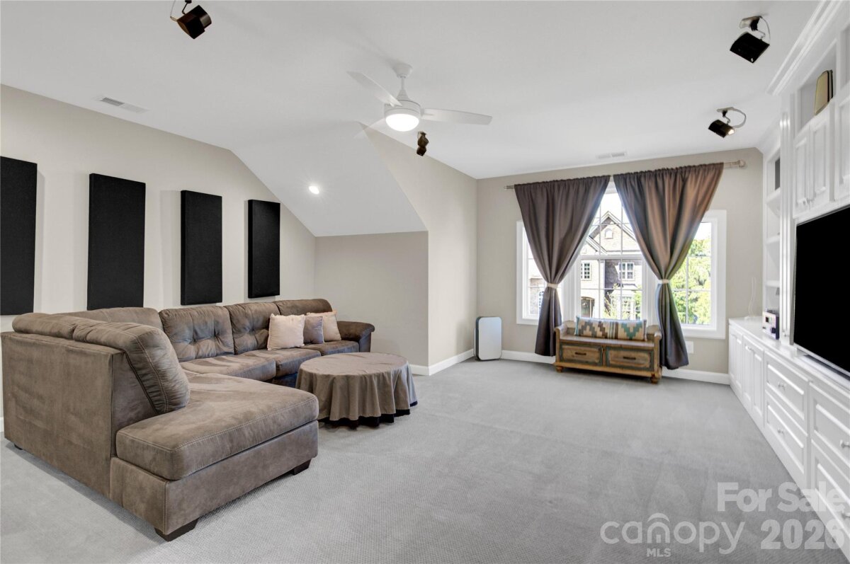 Welcome to a thoughtfully designed retreat in the Enclave at Massey, where refined finishes, a highly functional layout, and a private setting come together. Situated on nearly 0.3 acres, the fenced backyard backs to a natural wooded buffer, offering a sense of privacy that’s increasingly hard to find within a neighborhood setting. The main level is both elevated and practical, anchored by a well-appointed kitchen featuring a large island with a built-in beverage refrigerator, gas cooktop, and stainless steel appliances. The open-concept design flows effortlessly into the living and dining areas, creating a comfortable space for both everyday living and entertaining. A standout feature is the main-level layout, offering three bedrooms, two full bathrooms, and a dedicated office—providing flexibility for guests, multi-generational living, or working from home without compromise. Upstairs expands the living space with an additional bedroom, full bathroom, and a bonus room complete with surround sound—ideal for a media room, play space, or secondary living area. Outdoor living is equally inviting, with a covered, screened porch featuring a fireplace and views of the private backyard—an easy extension of the home year-round. A side-load three-car garage and extended driveway enhance both function and curb appeal, while a Tesla charger and smart home camera system add modern convenience. Located in the Enclave at Massey, residents enjoy access to resort-style amenities including a pool with lazy river and slide, clubhouse, fitness center, and playground. Zoned for highly regarded Fort Mill schools and available for quick move-in.