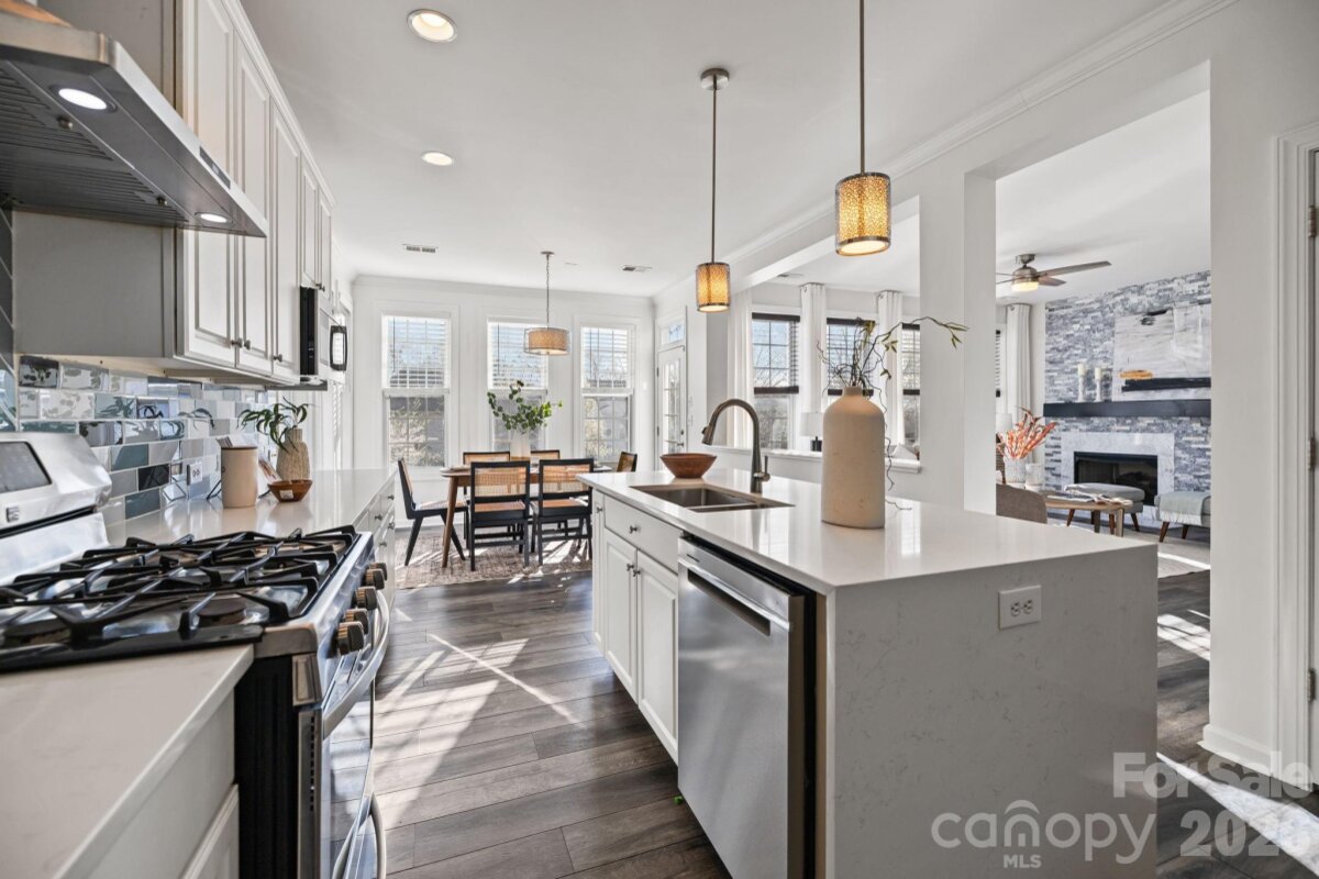 Discover the perfect blend of modern efficiency and functional design at 13803 Daltrey Lane. This 5-bedroom, 3-bathroom home in Ballantyne welcomes you on the main floor with a dedicated home office and formal dining room/open flex area. With a bedroom and full bathroom on the 1st floor, you have the ideal space for guests or multi-generational living. The large living room with tons of natural light and a gas fire place provide for a wonderful space to relax and unwind. Steps away is the spacious kitchen with island and eat-in area! Upstairs, the primary suite serves as a cozy retreat with a double-vanity ensuite with a garden tub, shower, and walk-in closet. The 2nd floor has 3 additional bedrooms and a very generous BONUS room! The home had a new roof installed in 2023 and a new dual-zone HVAC in 2025! The yard is equipped with a smart-tech irrigation system for ease of keeping your lawn looking great! The backyard is partially fenced with several trees for privacy while enjoying the patio. Along with Ballantyne schools, this area offers premier dining and retail at Blakeney, Stonecrest and much more! This residence is move-in ready and optimized for the busy professional. Come tour and see all this property has to offer you!