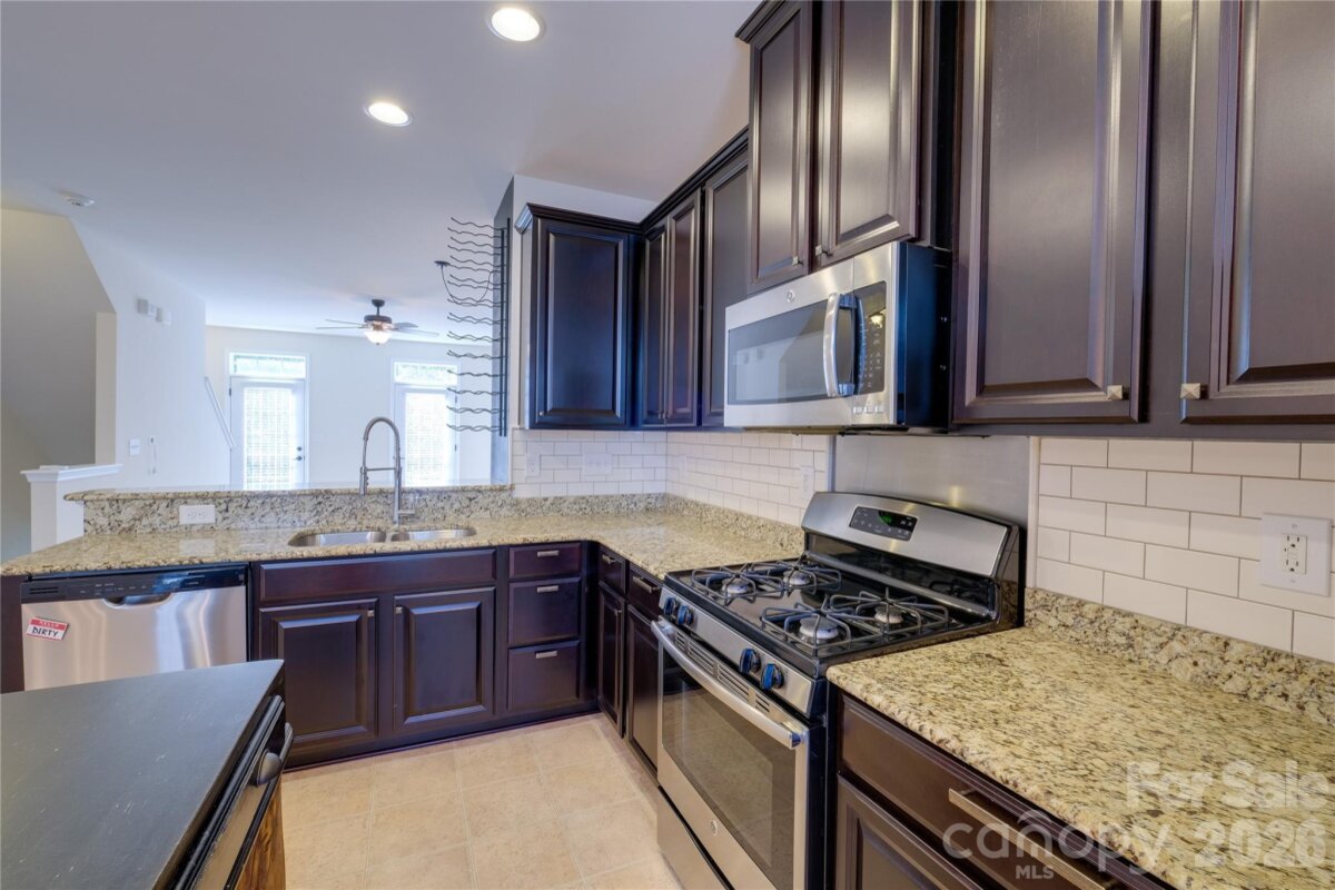 Welcome to 13828 Winmau Ln in the highly sought after Vermillion neighborhood! Extremely clean and meticulously maintained with thoughtful updates throughout. Large kitchen with great natural lighting with a Juliet balcony w/Trex decking, granite countertops, 42" cabinets, gas range and stainless appliances. Bar seating opens to living room area with a built in wine rack. The primary bedroom features dual closets, tiled shower w/dual shower heads & sinks. Charleston style doors w/opening from main living room. Recessed lighting, lower floor recreation/office area w/ wide plank flooring, oversized attached single car rear garage with room for extra storage or work space, 9 ft ceilings, multi zoned HVAC on all 3 levels, tank-less gas water heater and 2" blinds throughout. Restaurants are just around the corner, Harvey's Bar and Grill and B Squared bottle shop & tasting room. Wooded walking trails, 2 saltwater pools, playground & close proximity to downtown Huntersville. Don't let this opportunity pass before it's too late!