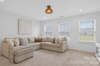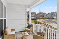 Located on a desirable corner homesite in the highly sought-after Olmsted community, this beautifully upgraded Craftsman offers privacy, quality finishes, and exceptional functionality. With no neighbor on one side and wooded views behind, the setting feels open yet peaceful. Just over three years old, the home features oak hardwood floors, crown molding, custom wainscoting, and abundant natural light throughout the main living areas. The open-concept layout is ideal for modern living and entertaining. The kitchen showcases quartz countertops, a custom wood hood, farmhouse sink, gas cooktop with wall ovens, upgraded soft-close cabinetry, under-cabinet lighting, and a spacious island with seating. A butler’s pantry enhances storage and entertaining flow. Additional main-level highlights include a welcoming front porch, drop zone with built-in desk, designer light fixtures throughout, and upgraded stairs with wood treads and a carpet runner. Upstairs, a large loft provides flexible living space. The primary suite offers generous proportions, dual walk-in closets with custom organizers, and a spa-inspired bath. Secondary bedrooms are well-sized and thoughtfully positioned. The oversized three-car tandem garage includes an outlet and offers versatility for additional vehicles, storage, or hobby space. Exterior features include a gas stub for grilling and a six-zone front and back irrigation system. Residents of Olmsted enjoy exceptional amenities including a resident’s club with fitness center, resort-style pool with waterslide, lighted tennis courts, and walking trails.