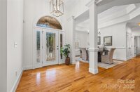 Exclusive Catawba Shores Estates. Set on a private 1.24-acre homesite, this refined 4BR | 2 Full + 2 Half Bath residence welcomes you through a stunning entry into an open floor plan that frames the dining room and transitions to a gracious living room with a gas fireplace flanked by custom bookshelves. A chef’s kitchen appointed with Wolf appliances anchors the main level and connects seamlessly to the showstopping 627 sq. ft. covered patio—the home’s centerpiece for effortless indoor–outdoor entertaining or a quiet morning coffee. The primary suite pampers with heated bath floors. A large main-level flex room provides true versatility—5th bedroom, private office, or playroom. Thoughtful upgrades abound: new light fixtures, oversized pantry, huge laundry room, two HVAC systems (zoned), Generac natural-gas backup generator, water softener, central vacuum, and fresh interior paint. Outside features include an oversized three-car garage, expansive driveway (the costly concrete is already done), and a work shed with electric. Community amenities elevate everyday living with a pool and 120+ acres of green space and trails—an upscale lifestyle with upgrades too numerous to list.