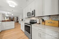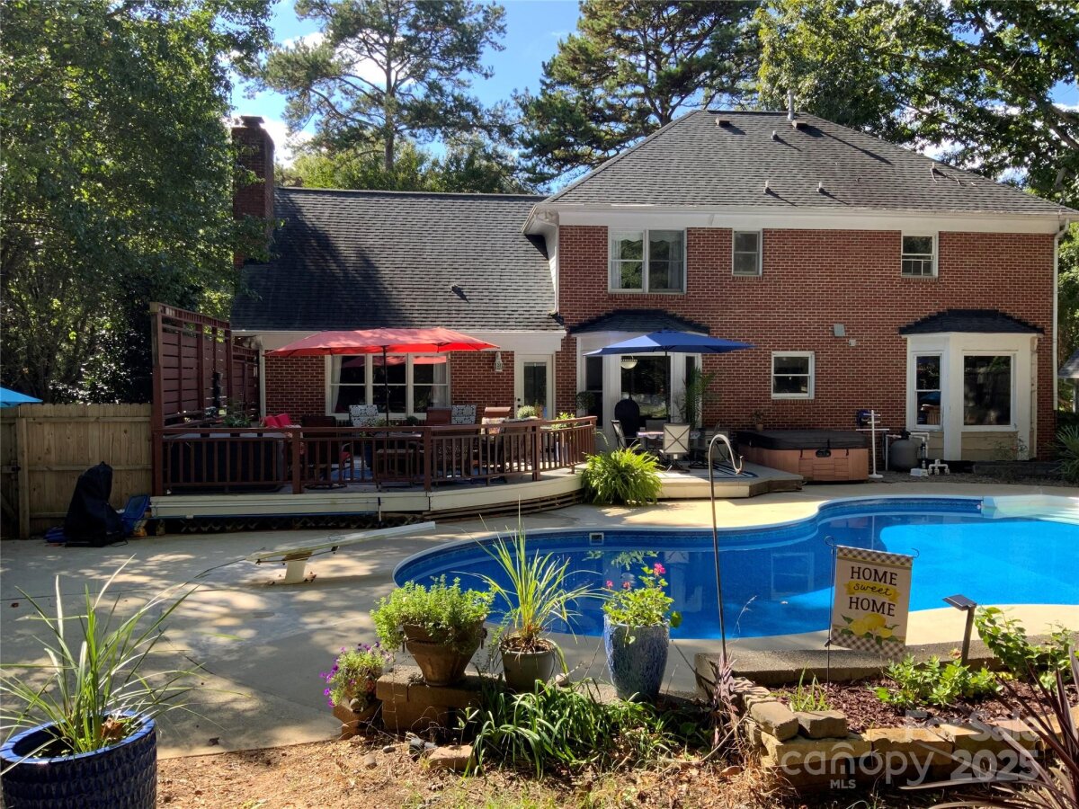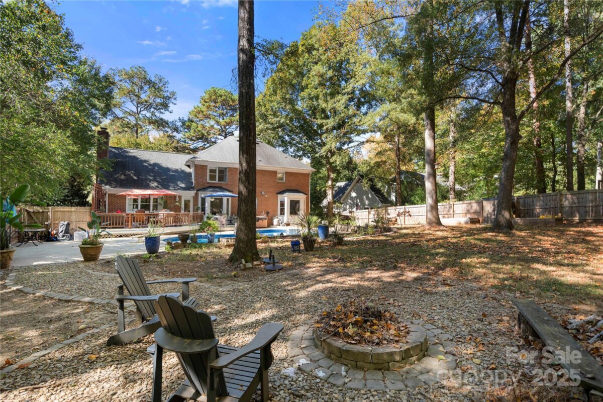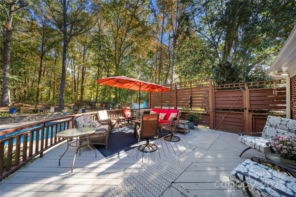 Updated 6 Bdrm /3 BA brick home with new kitchen, saltwater pool & 1+acre lot —with NO HOA! This beautifully updated, spacious home brings modern touches together with a great location. You're just a quick walk to the amazing Bellingham Park with its walking trails, playgrounds, ball fields, tennis courts and more. The main floor shines with many tasteful upgrades in 2025, including all new 42" kitchen cabinets, lovely quartz countertops, high-end waterproof LVP flooring and new light fixtures throughout. Fresh neutral paint creates a bright, welcoming atmosphere. A main level bedroom offers flexibility for visitors, remote work or playroom while a 2nd living room and dining room can become as formal or informal as you desire! The front staircase makes a grand statement at the heart of the home, leading upstairs to the large primary suite -- a peaceful retreat with its freshly updated ensuite bathroom boasting a new double vanity, quartz countertop, tile flooring and modern lighting. Rich bamboo flooring and new contemporary light fixtures throughout add warmth and charm. Four more bedrooms provide useful space for family, guests or hobbies — plus tons of closet and floored attic storage. Outside, the two-section deck overlooks your saltwater pool and huge, private backyard. With a large fenced-in portion, there’s plenty of room for pets to roam and family to play, plus loads of wooded land beyond the fence to explore or build. There's even a fire pit for entertaining as well as a 12 x 12 double-lofted shed for even more storage. Such flexibility! In addition to all the 2025 upgrades this home includes, the location can't be beat. Top-rated Mooresville schools are only minutes away -- about a half mile to elementary & middle schools and one mile to the high school. Drive, bike or walk to downtown shops and restaurants. Major employers like Lowe’s HQ and Duke Health Lake Norman Hospital are close by too. This updated, move-in ready home offers plenty of room inside and out to live, breath, entertain and enjoy nature — all within minutes of city life. With backyard privacy and NO HOA it's truly a hidden gem waiting for you!