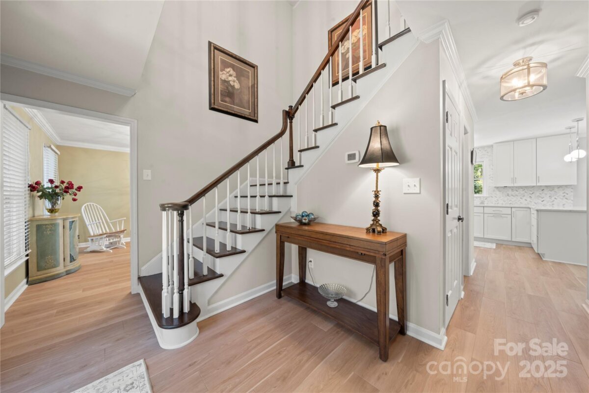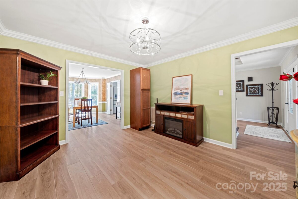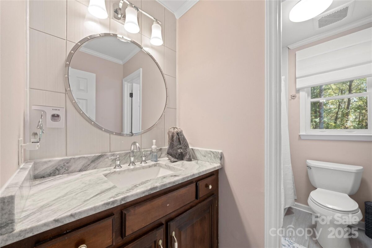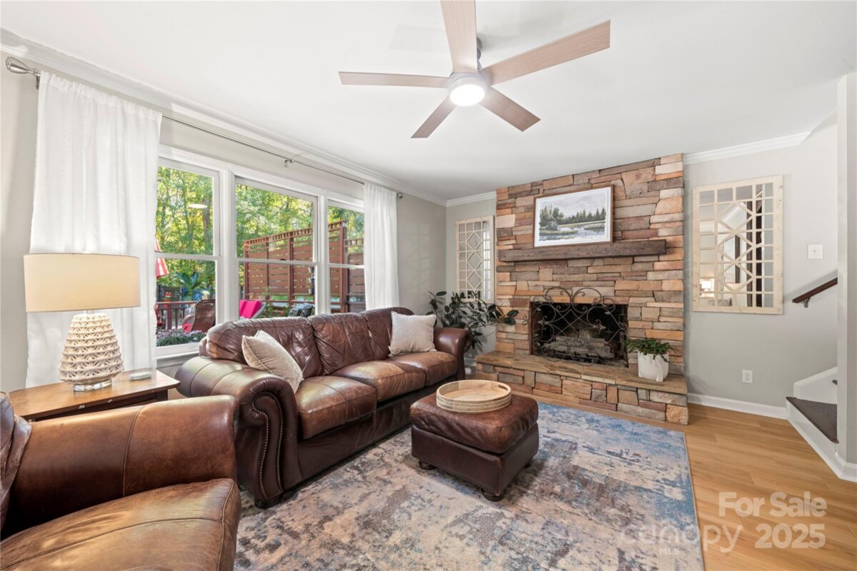 Updated 6 Bdrm /3 BA brick home with new kitchen, saltwater pool & 1+acre lot —with NO HOA! This beautifully updated, spacious home brings modern touches together with a great location. You're just a quick walk to the amazing Bellingham Park with its walking trails, playgrounds, ball fields, tennis courts and more. The main floor shines with many tasteful upgrades in 2025, including all new 42" kitchen cabinets, lovely quartz countertops, high-end waterproof LVP flooring and new light fixtures throughout. Fresh neutral paint creates a bright, welcoming atmosphere. A main level bedroom offers flexibility for visitors, remote work or playroom while a 2nd living room and dining room can become as formal or informal as you desire! The front staircase makes a grand statement at the heart of the home, leading upstairs to the large primary suite -- a peaceful retreat with its freshly updated ensuite bathroom boasting a new double vanity, quartz countertop, tile flooring and modern lighting. Rich bamboo flooring and new contemporary light fixtures throughout add warmth and charm. Four more bedrooms provide useful space for family, guests or hobbies — plus tons of closet and floored attic storage. Outside, the two-section deck overlooks your saltwater pool and huge, private backyard. With a large fenced-in portion, there’s plenty of room for pets to roam and family to play, plus loads of wooded land beyond the fence to explore or build. There's even a fire pit for entertaining as well as a 12 x 12 double-lofted shed for even more storage. Such flexibility! In addition to all the 2025 upgrades this home includes, the location can't be beat. Top-rated Mooresville schools are only minutes away -- about a half mile to elementary & middle schools and one mile to the high school. Drive, bike or walk to downtown shops and restaurants. Major employers like Lowe’s HQ and Duke Health Lake Norman Hospital are close by too. This updated, move-in ready home offers plenty of room inside and out to live, breath, entertain and enjoy nature — all within minutes of city life. With backyard privacy and NO HOA it's truly a hidden gem waiting for you!