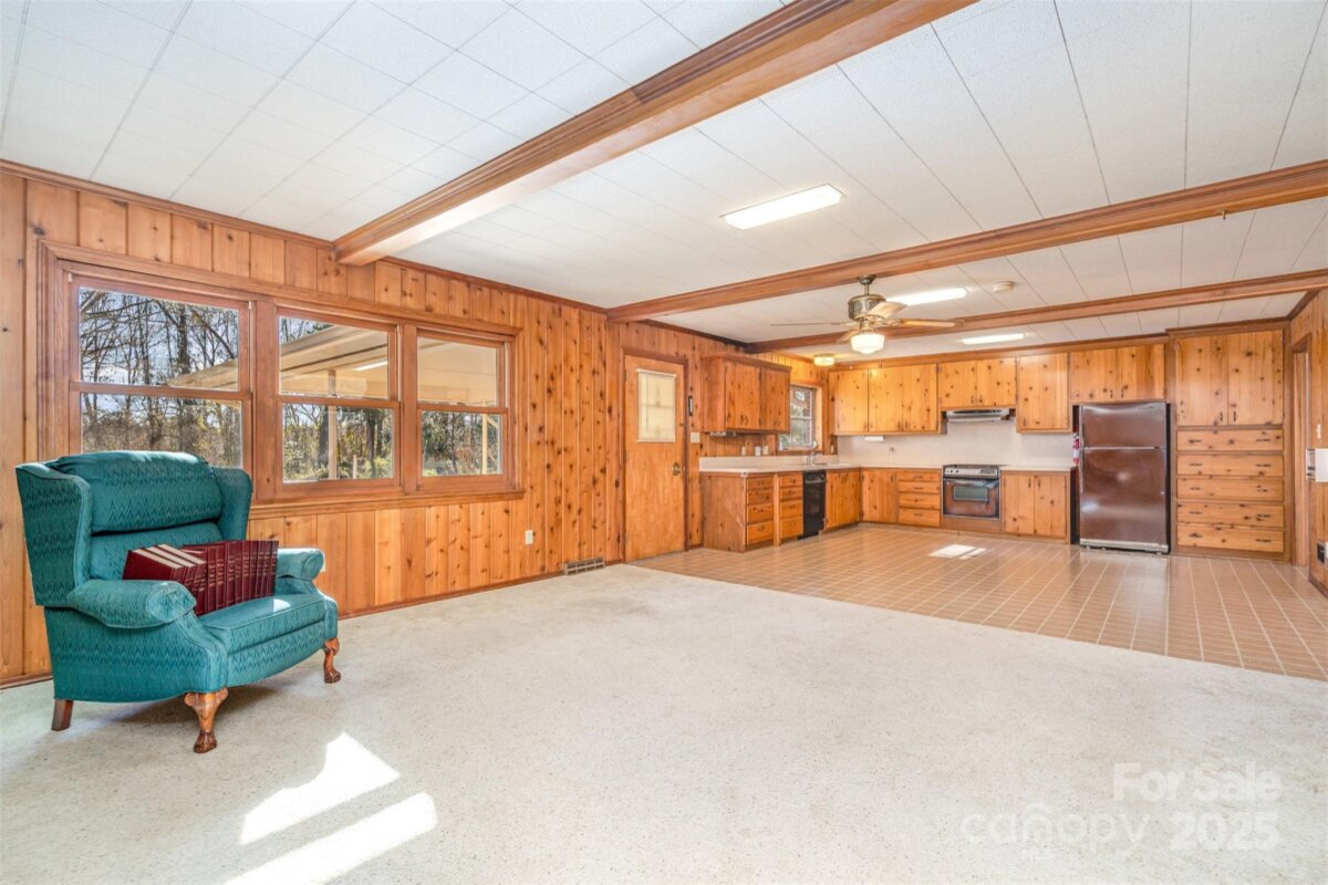 Handsome brick ranch in one of Concord's established neighborhoods. Built by contractor for his own family and professionally maintained by this one owner. Open floor plan unique for this era. Ready for your imagination to make it your own! Thick Canadian cedar paneling in kitchen. family room, and one bedroom. Built-ins throughout for great storage and convenience. Over a half-acre lot abuts natural area in the back. Close to Historic Downtown, elementary school, and Concord Swim Club (private.) Basement would be ideal rec room. Heated and cooled, kitchenette space, fireplace, sink, and half bath. Can enter from main level or garage. Garage has extra space for storage or shop. FP insert in family room does not convey.
