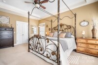 Discover lakeside elegance in this Charleston-style Saussy Burbank home in Water Oak’s coveted lakefront enclave, where homes rarely come to market. Across the street, a preserved natural corridor alive with birds & wildlife stretches toward Lake Norman, creating a serene backdrop visible from two covered rocking chair front porches. With no homes directly across the street, this residence enjoys a unique blend of privacy and tranquility in one of the neighborhood’s most desirable settings. Step inside to a gracious foyer, grand staircase, 10' ceilings & hardwood floors. A dining rm & versatile living rm (an ideal home office) lead into the heart of the home, where the family rm, breakfast area & spacious chef’s kitchen come together seamlessly. The kitchen is a true showstopper, featuring an oversized island, walk-in pantry & extra wall of cabinets, offering generous storage/prep space for effortless cooking and entertaining. Upstairs, the spacious primary suite serves as a luxurious, peaceful retreat, while one of the 3 additional BRs has been converted into a fully equipped home theater for a true cinematic movie experience at home—just bring the popcorn! A cozy landing leads to the upper balcony, your private perch for morning coffee with a view. A patio & gazebo surrounded by fountains and seasonal plantings create a private oasis for relaxation and get-togethers. Detached two-car garage, newer roof & 1st level HVAC (both 2023) & home generator offer added convenience and peace of mind. Water Oak is a sought-after community with tree-lined streets, sidewalks & charming architecture. Residents enjoy an outdoor pool, splash pad, covered pavilion, playground & kayak/paddleboard launch. The Village at Byers Creek is right next door for daily essentials, with I-77 & additional shopping and dining just minutes away. With its lakefront location, privacy & proximity to area amenities, Water Oak offers the best in lakeside living and everyday convenience.