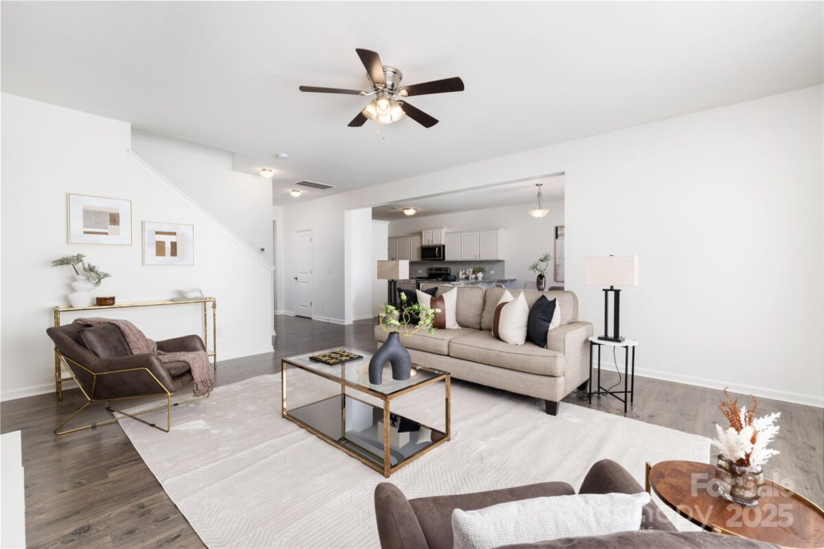 Beautifully maintained 4 BR / 2.5 BA in the desirable Larkin community, offering amenities like a playground and scenic sidewalks, as well as optional access to premier amenities like a clubhouse, golf course, pool and tennis courts. This move-in-ready home features an open-concept layout with modern finishes throughout. The main level includes a formal dining room, a contemporary kitchen with breakfast nook, and a spacious great room ideal for gathering. Upstairs you'll find a generous primary suite with gorgeous view of a pond, three additional bedrooms, full bath, and a convenient laundry room. All appliances convey—including refrigerator, washer, dryer, and window blinds. Optional access to the pool and tennis amenities are available via a separate HOA fee managed by William Douglas Management Company. Membership to the golf course and clubhouse are arranged directly through the golf course.