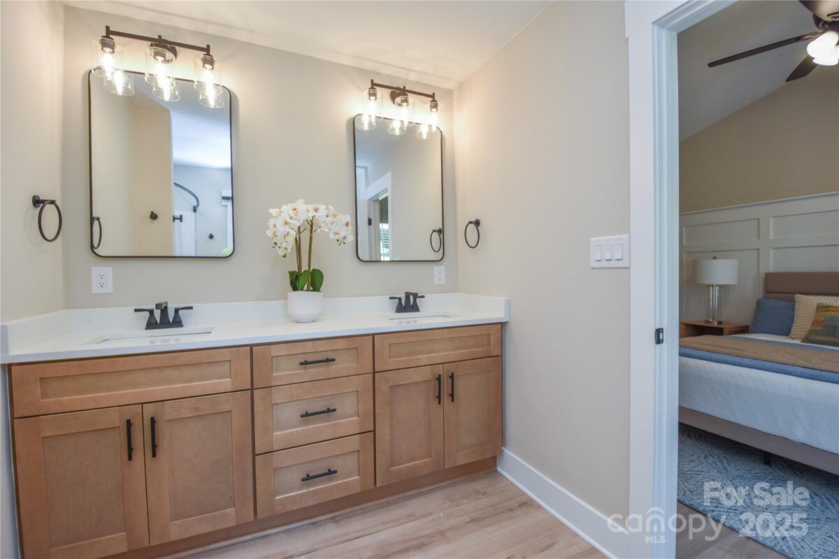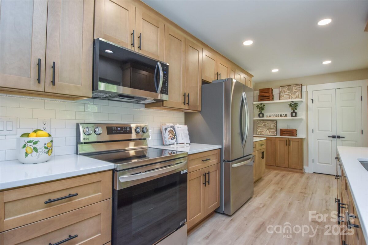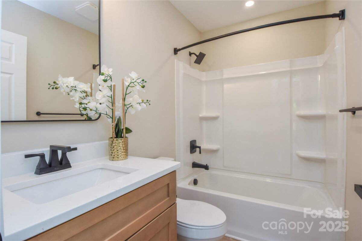 Welcome to a fully reimagined home where modern luxury meets timeless comfort in one of Troutman’s most desirable locations. Nestled on a quiet cul-de-sac in a non-HOA neighborhood just south of Troutman and minutes from Mooresville and Lake Norman State Park this beautifully updated residence combines small-town charm with convenient access to shopping, dining, and recreation. Originally built in 2001, this three-bedroom, three-bath home has been meticulously renovated from top to bottom, creating a true new-construction experience within an established community setting. The home features a fully finished basement that can serve as a fourth bedroom, guest suite, home office, or recreation area. Every inch has been thoughtfully refreshed with high-end finishes and quality craftsmanship. The brand-new kitchen showcases solid wood cabinetry with soft-close doors and drawers, quartz countertops, a built-in coffee bar, walk in pantry, under-cabinet lighting, and a premium LG appliance package. The open floor plan flows effortlessly into the dining and living area, where vaulted ceilings and abundant natural light create a welcoming sense of space and warmth. The primary suite continues the elevated feel, featuring vaulted ceilings, feature wall, a walk-in closet and a luxurious en-suite bath with modern fixtures. The split-bedroom plan provides privacy for family or guests, while the basement adds endless flexibility for multigenerational living, entertaining, or a home gym. Major systems are all new, including the roof, HVAC, plumbing, updated electrical and fixtures. New luxury vinyl plank flooring runs throughout the home, offering a cohesive look that’s both stylish and durable. It’s essentially a brand-new home built within a 2001 shell — truly turnkey and maintenance-free. Outdoor living shines here with a large covered front porch perfect for rocking chairs and morning coffee, plus an expansive two-level rear deck (with hot tub platform and electric pre-wire) ideal for entertaining or relaxing while overlooking the private backyard. The two-car garage provides ample parking as well as a wired shed for additional storage. If you’ve been searching for a property that blends quality construction, modern style, and an unbeatable location — this is it.