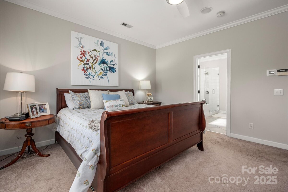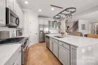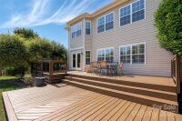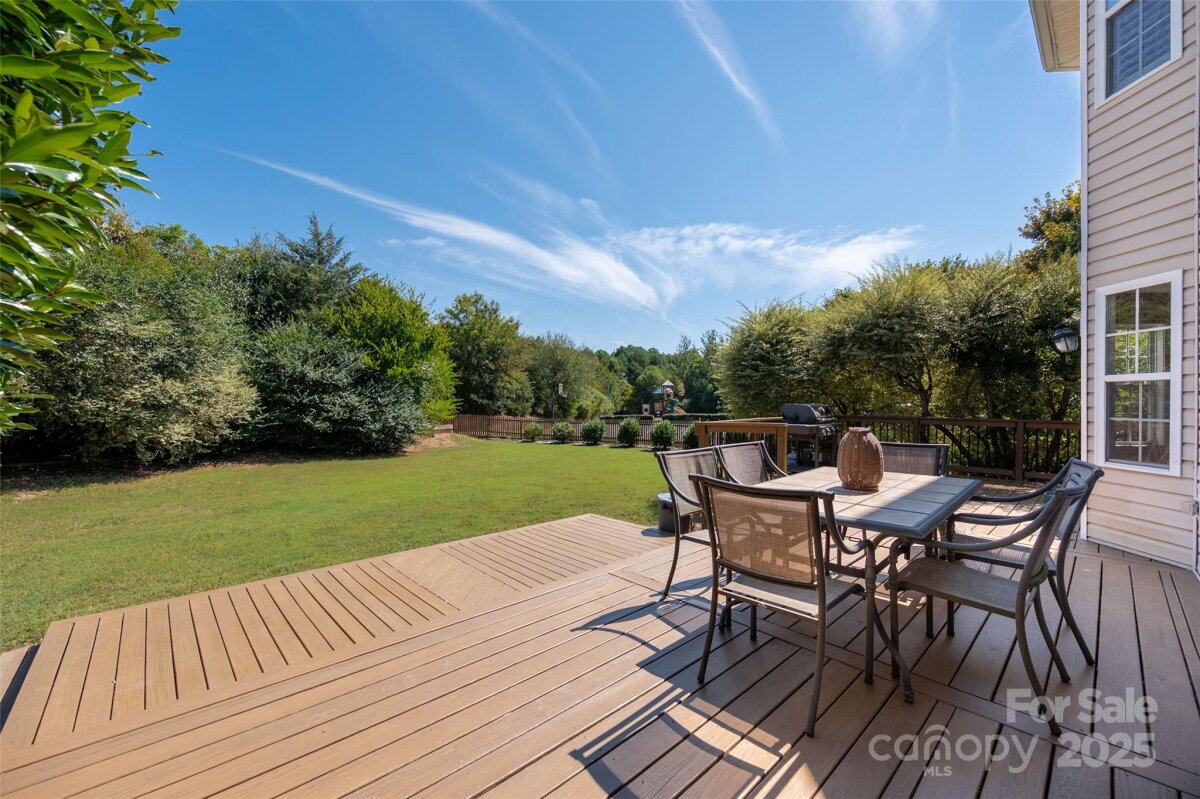 The Best of Ballantyne! This move-in ready home sits on one of the largest cul-de-sac lots in Ballantyne Meadows—nearly ½ acre and right next to the neighborhood park. Inside, the open floor plan features a renovated gourmet kitchen with quartz countertops, gas range, and tile backsplash that flows into the family room. The first floor includes a guest bedroom with full bath and a flexible dining/office space. Upstairs offers 4 bedrooms and 2 full baths, including a freshly updated owner’s suite with enlarged shower, double vanity, and jacuzzi tub. Enjoy outdoor living with a newer oversized deck and spacious fenced yard, perfect for kids and entertaining. Side-entry garage and long driveway provide ample parking. Fantastic location—walkable to Ballantyne Bowl and minutes from top schools, dining, and shopping!