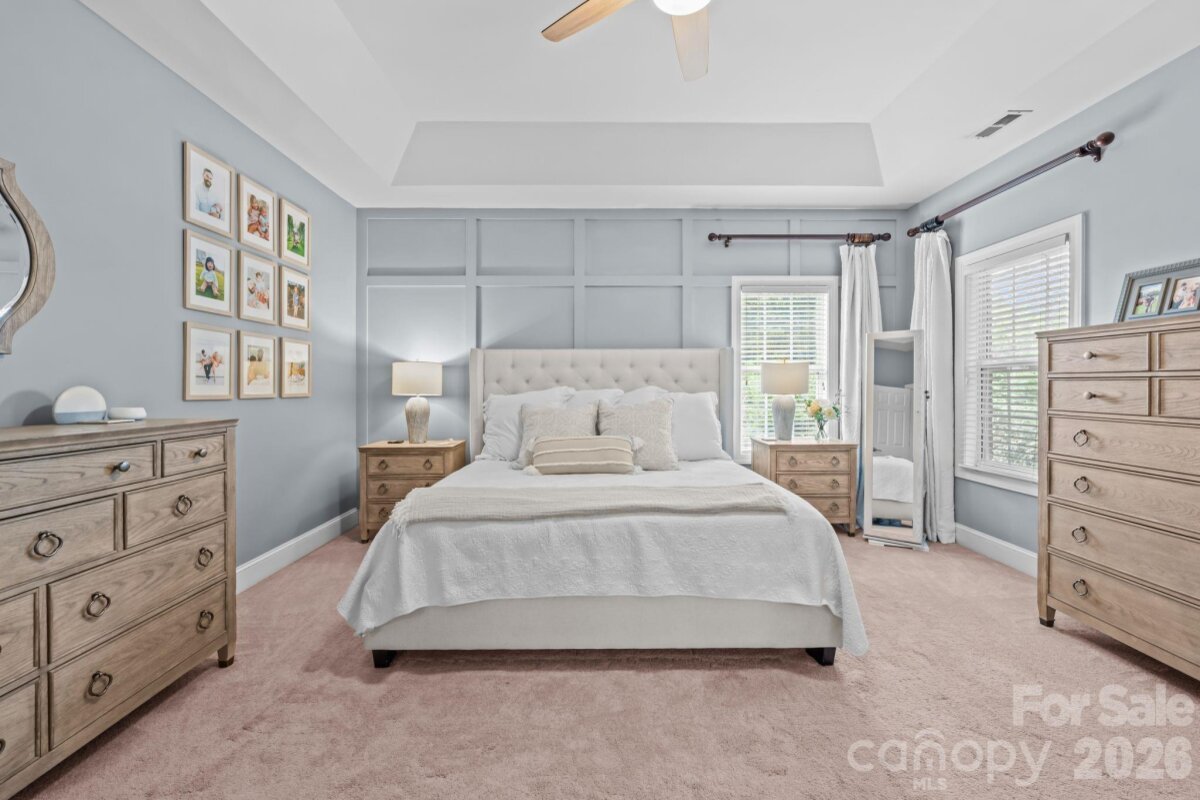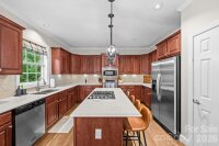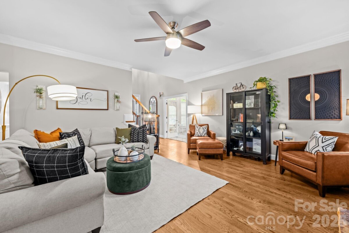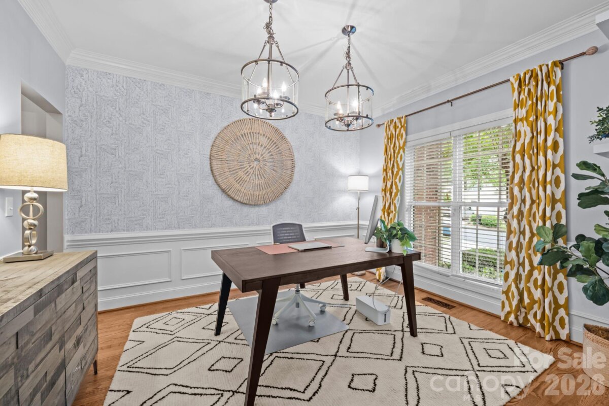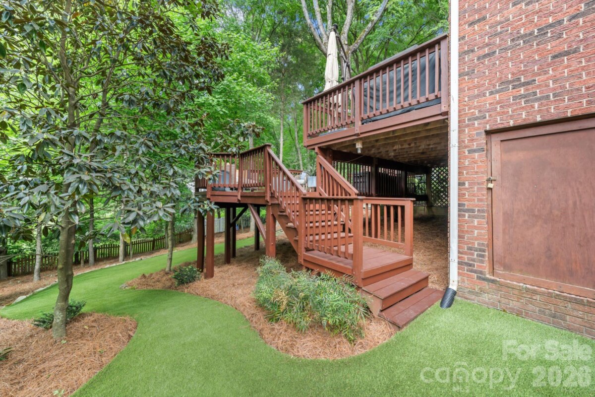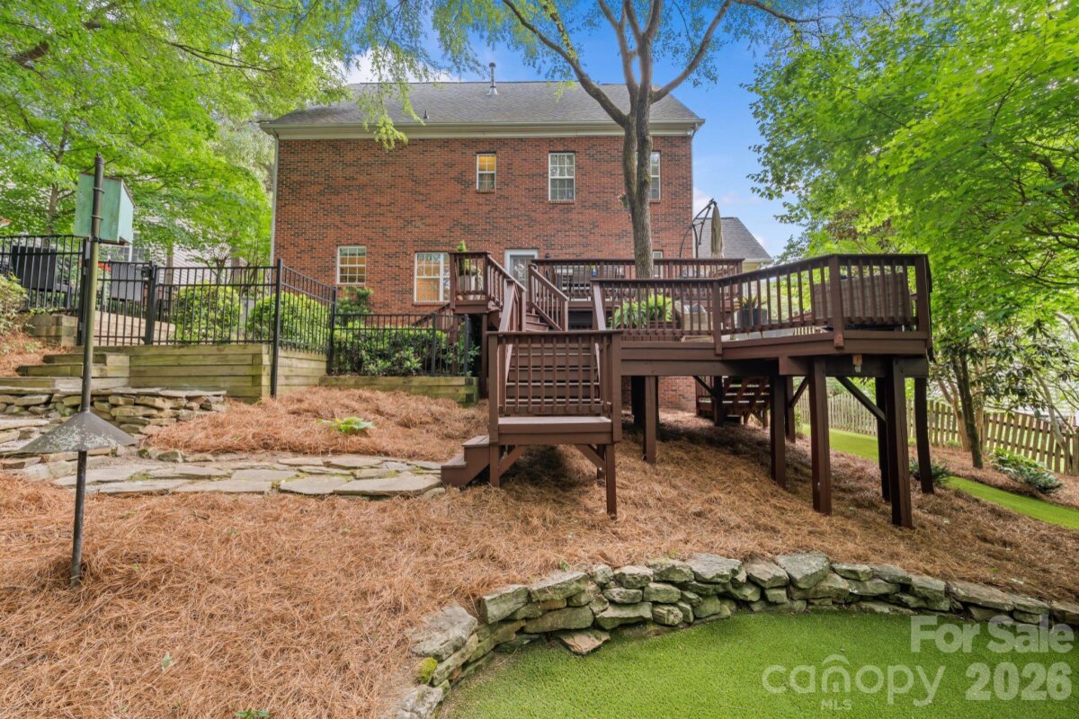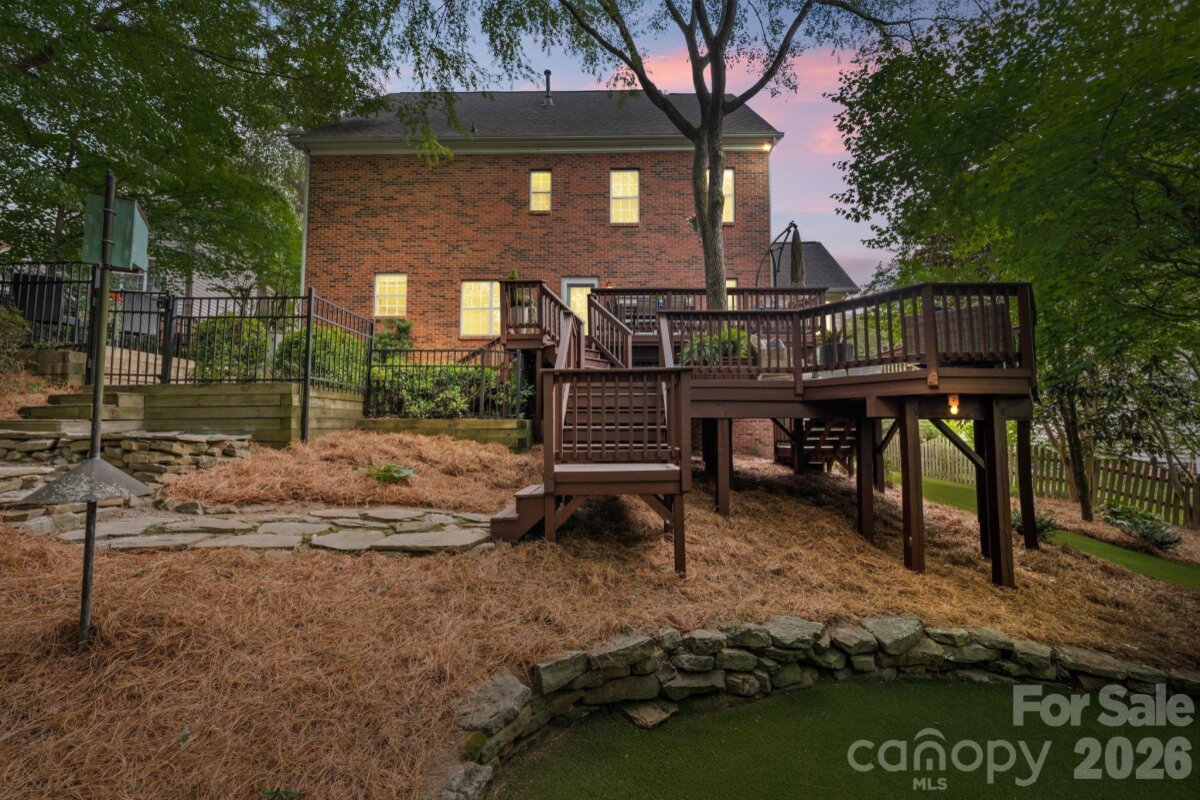 Experience timeless elegance and everyday convenience in this beautifully maintained 4-bedroom, all-brick home, ideally situated in the heart of Ballantyne. Thoughtfully designed with a balance of tradition and functionality, this home offers a flexible floorplan suited for both comfortable living and effortless entertaining. Beyond the beautiful entry hall you'll step into the warm and inviting main living area. This flows into the spacious kitchen which creates an inviting space for gatherings. Additionally, on the main floor is a bright and cheerful sunroom and flex area that could be used for dining or office space. Upstairs, The primary suite serves as a private retreat, featuring generous closet space and a spa-inspired bath designed for relaxation. While upstairs, don't miss the very nice additional storage in the pull down attic. Outdoor living is equally impressive. A newly refinished deck overlooks a private, terraced backyard with lush artificial turf—offering a low-maintenance setting with a refined, resort-like feel. Check out the walk-in crawlspace which allows storage for your outdoor toys and equipment. For further outdoor space and amenities visit the well-maintained neighborhood park and picnic shelter around the corner. Perfectly positioned just minutes from Ballantyne Bowl, Ballantyne Village, top rated public schools and an array of shopping, dining, and lifestyle amenities, this home delivers exceptional access to everything the area has to offer.