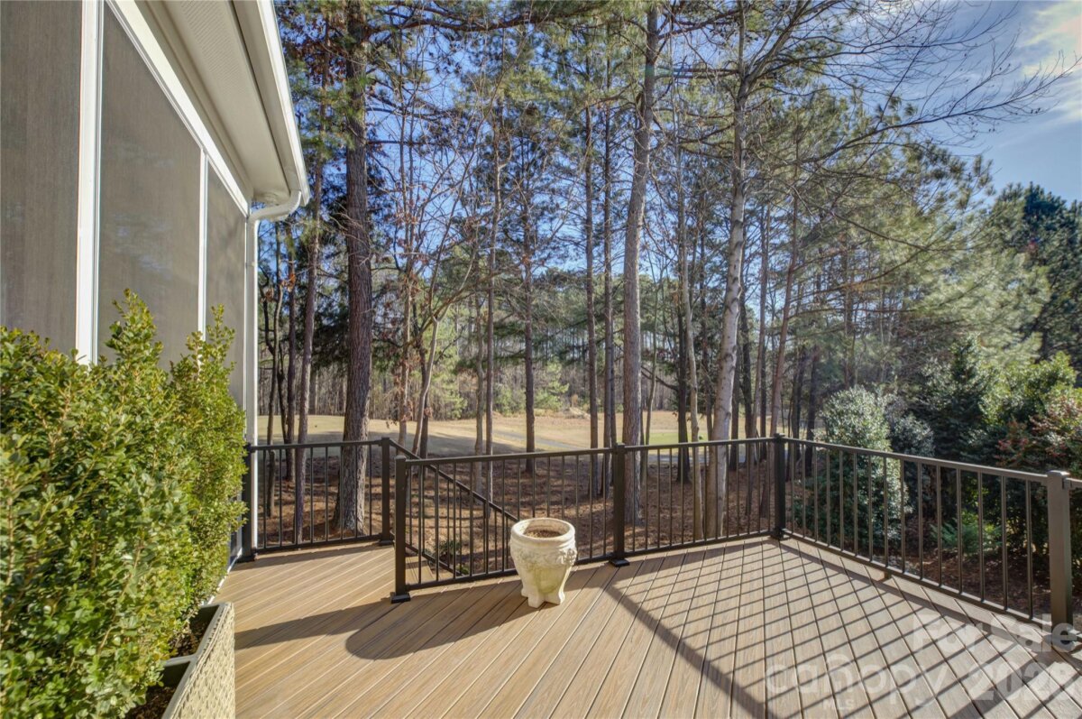 This exquisite former model brick home offers four spacious bedrooms and three and a half baths, perfectly positioned overlooking the tee box of the 8th hole at Palisades Country Club. Upon entry, refined architectural details captivate at every turn, featuring crown molding, sophisticated wainscoting in the hallway and dining room, and a private office framed by elegant French doors. The gourmet kitchen is a chef’s dream, adorned with marble countertops and backsplash, premium updated appliances, and a custom pantry. Thoughtful modern touches include integrated USB outlets in the kitchen and breakfast bar. The bright breakfast area flows effortlessly into a custom-built screened porch, complete with a gas fireplace, Sonos stereo system, and poly panels over the screens for year-round enjoyment—an idyllic setting for both relaxation and entertaining. Extending the living space outdoors, the wrap-around Trex deck offers an electrical outlet for pellet grill hookup, perfect for alfresco dining. The state-of-the-art theater room boasts a 4K projection TV with Apple integration, a 70" screen, and an in-house Sonos stereo system with app control, delivering a cinematic experience within the comfort of home. The spacious primary suite is a serene retreat featuring a tray ceiling, a luxurious bath with dual vanities, and custom closets designed to accommodate your every need. Meticulously maintained, this exceptional home masterfully blends stylish indoor comfort with the natural beauty of its surroundings.