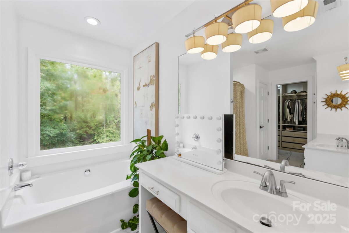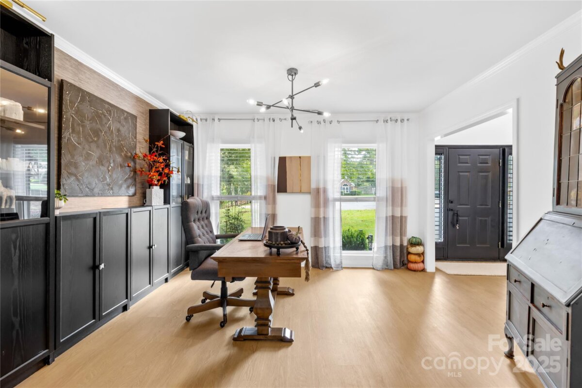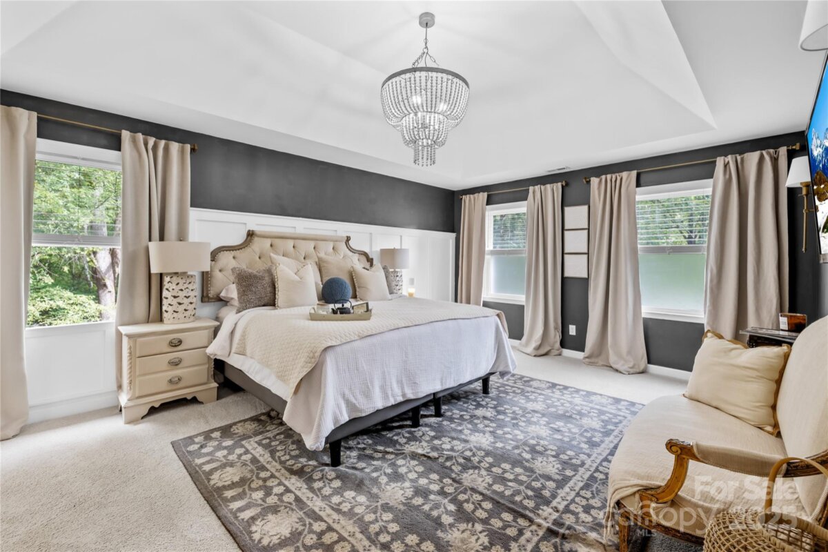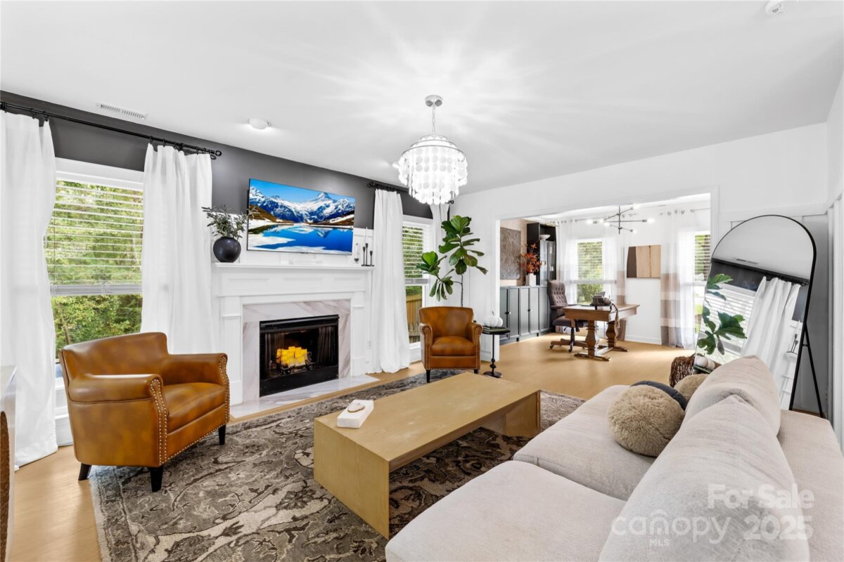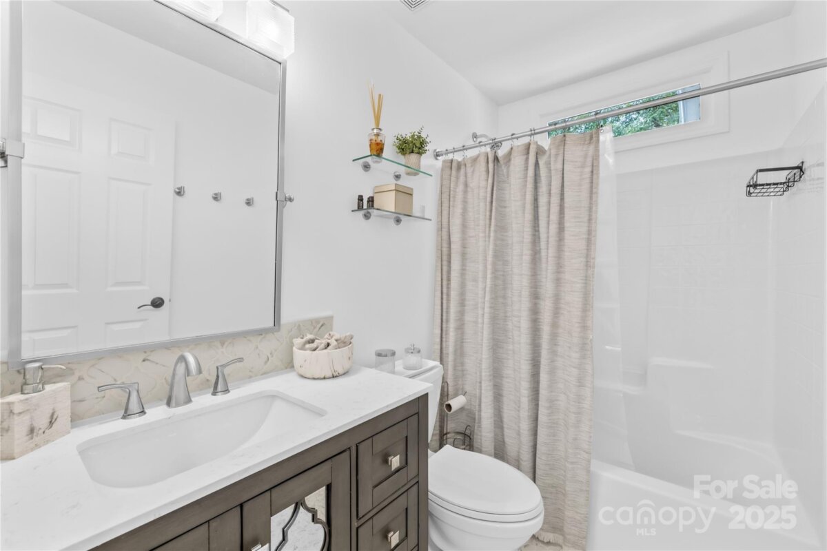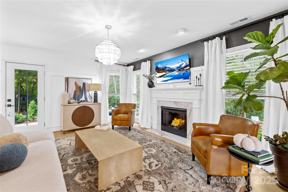 Welcome to your own private retreat in Franklin Grove! Nestled on a quiet cul-de-sac street in a picturesque community with a pond for fishing and steps from Dye Creek Greenway to Bellingham Park, this beautifully updated home offers the perfect blend of serenity, outdoor living, and modern design. The over 1/3 acre homesite is a nature lover’s dream—surrounded by mature trees and a peaceful creek that flows alongside the property. Follow the charming blue stone path to the water’s edge, unwind by the fire pit, or relax under the pergola and canopies while listening to the sounds of the creek. Entertain or dine alfresco on the extended patio accented by stone pathways, retaining walls, and bistro string lights that create an inviting evening glow. A wooden privacy fenced backyard, vegetable garden, and lush landscaping complete this tranquil outdoor escape. Inside, the home is equally impressive with thoughtful updates throughout. LVP flooring, designer light fixtures, and sleek black door hardware create a modern, cohesive look. A new back door and updated blinds on most windows complete the home’s refreshed aesthetic. In the family room, a gas fireplace with Italian ceramic tile surround serves as a striking focal point, while the living room/office showcases built-in cabinetry. The dining room features elegant chair rail and decorative wallpaper, adding warmth and sophistication to the space. A fully renovated kitchen steals the show with quartz countertops, a brick backsplash, new cabinetry and pantry cabinet, electric cooktop with vent hood, double wall ovens, under-cabinet lighting, and a walk-in butler’s pantry. Completing the main level, the half bath impresses with a new vanity, mirror, lighting, and accent wall. Upstairs, the primary suite feels like a sanctuary with a dramatic tray ceiling, custom board & batten feature wall, and a large walk-in closet with custom shelving and designer wallpaper. The primary bath offers dual vanities, a soaking tub with views of the wooded backyard, separate shower, and updated tile flooring, faucets, and fixtures. Secondary bedrooms are generous in size, including one with a custom accent wall and another oversized bedroom/bonus with a new closet door and ceiling fans. The hall bath was also remodeled with a new vanity, backsplash, mirror and tile flooring. Even the garage has been upgraded with an insulated door and abundant cabinetry for organized storage. The home is served by coveted Mooresville Graded Schools and offers unbeatable convenience— under 4 miles to Lowe’s Corporate, Duke Health Lake Norman Hospital, Harris Farms Shopping Center, Merino Mill and Downtown Mooresville with quick access to I-77. Every inch of this property has been enhanced with care and creativity. From the curated landscaping to the designer interiors, this home is more than move-in ready—it’s a lifestyle. Come experience the peace, charm, and character that make this property truly one of a kind. **New roof 2022**