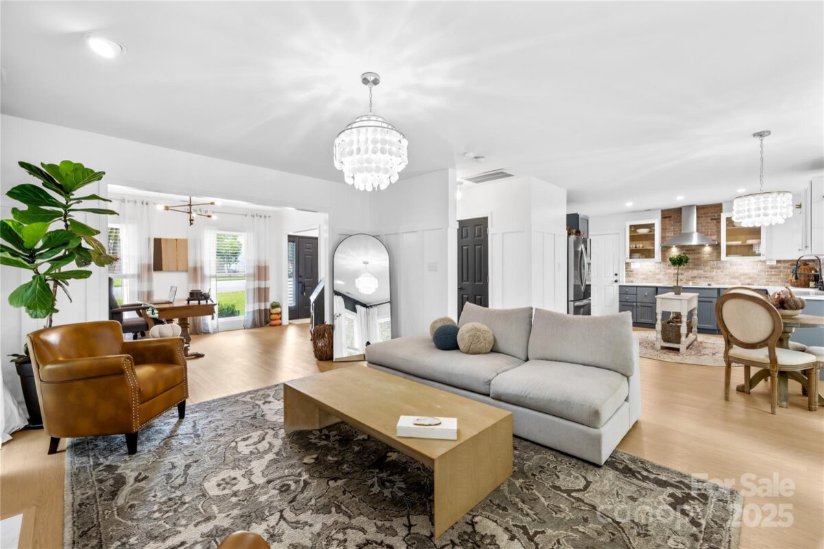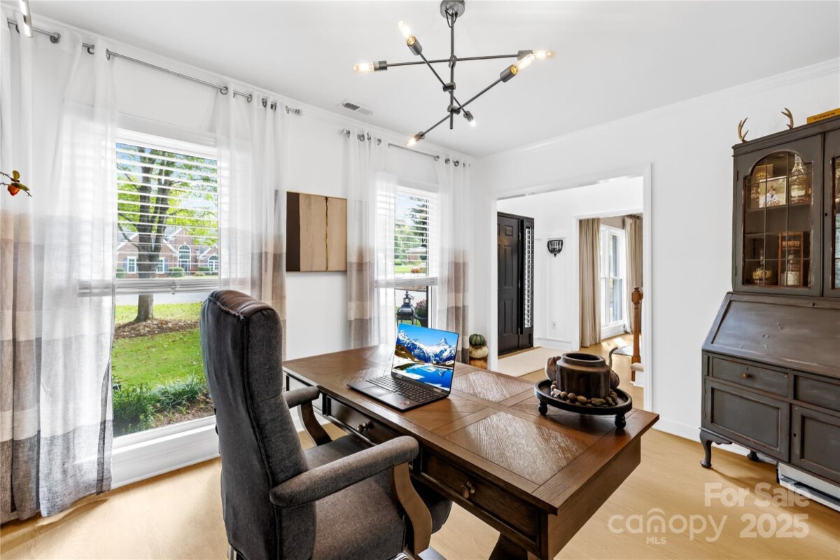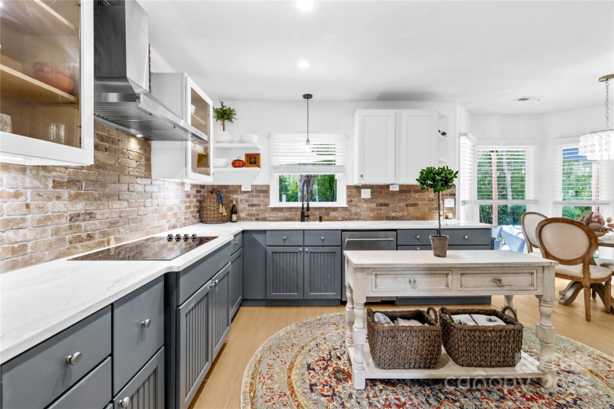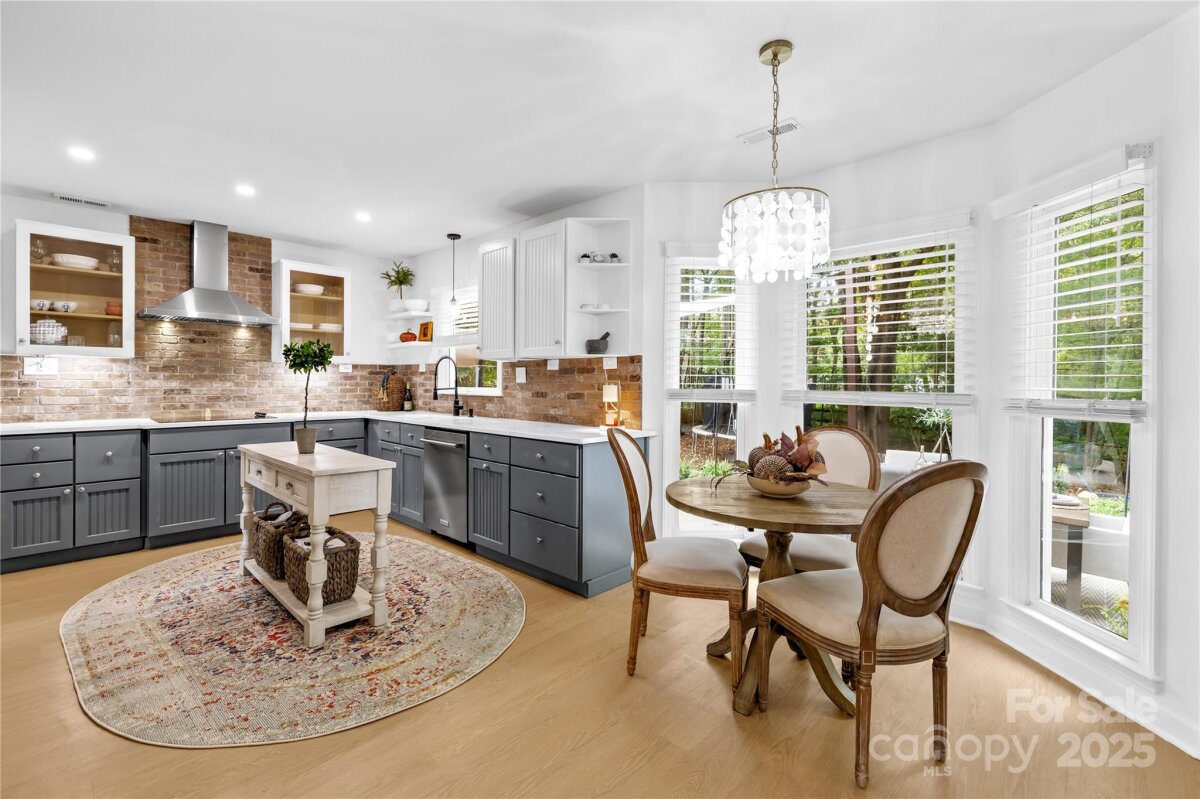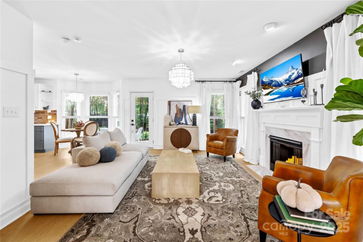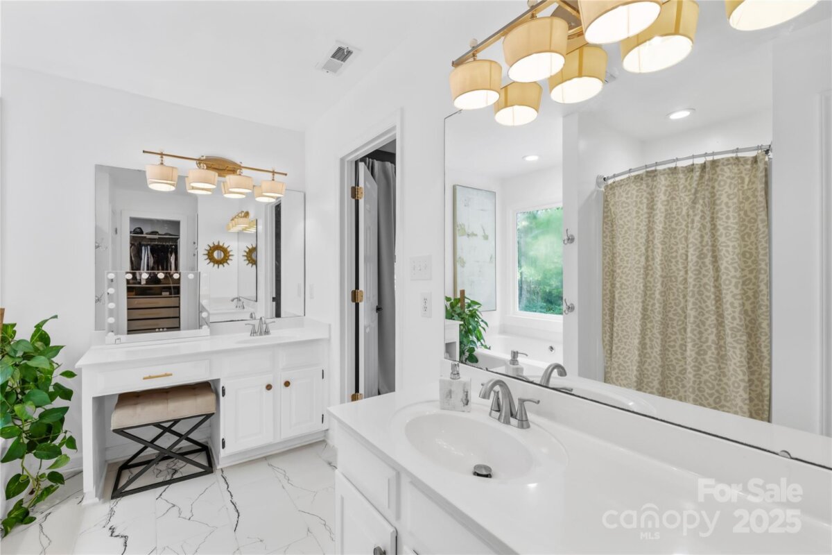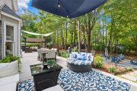 Welcome to your own private retreat in Franklin Grove! Nestled on a quiet cul-de-sac street in a picturesque community with a pond for fishing and steps from Dye Creek Greenway to Bellingham Park, this beautifully updated home offers the perfect blend of serenity, outdoor living, and modern design. The over 1/3 acre homesite is a nature lover’s dream—surrounded by mature trees and a peaceful creek that flows alongside the property. Follow the charming blue stone path to the water’s edge, unwind by the fire pit, or relax under the pergola and canopies while listening to the sounds of the creek. Entertain or dine alfresco on the extended patio accented by stone pathways, retaining walls, and bistro string lights that create an inviting evening glow. A wooden privacy fenced backyard, vegetable garden, and lush landscaping complete this tranquil outdoor escape. Inside, the home is equally impressive with thoughtful updates throughout. LVP flooring, designer light fixtures, and sleek black door hardware create a modern, cohesive look. A new back door and updated blinds on most windows complete the home’s refreshed aesthetic. In the family room, a gas fireplace with Italian ceramic tile surround serves as a striking focal point, while the living room/office showcases built-in cabinetry. The dining room features elegant chair rail and decorative wallpaper, adding warmth and sophistication to the space. A fully renovated kitchen steals the show with quartz countertops, a brick backsplash, new cabinetry and pantry cabinet, electric cooktop with vent hood, double wall ovens, under-cabinet lighting, and a walk-in butler’s pantry. Completing the main level, the half bath impresses with a new vanity, mirror, lighting, and accent wall. Upstairs, the primary suite feels like a sanctuary with a dramatic tray ceiling, custom board & batten feature wall, and a large walk-in closet with custom shelving and designer wallpaper. The primary bath offers dual vanities, a soaking tub with views of the wooded backyard, separate shower, and updated tile flooring, faucets, and fixtures. Secondary bedrooms are generous in size, including one with a custom accent wall and another oversized bedroom/bonus with a new closet door and ceiling fans. The hall bath was also remodeled with a new vanity, backsplash, mirror and tile flooring. Even the garage has been upgraded with an insulated door and abundant cabinetry for organized storage. The home is served by coveted Mooresville Graded Schools and offers unbeatable convenience— under 4 miles to Lowe’s Corporate, Duke Health Lake Norman Hospital, Harris Farms Shopping Center, Merino Mill and Downtown Mooresville with quick access to I-77. Every inch of this property has been enhanced with care and creativity. From the curated landscaping to the designer interiors, this home is more than move-in ready—it’s a lifestyle. Come experience the peace, charm, and character that make this property truly one of a kind. **New roof 2022**