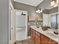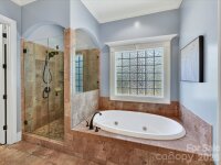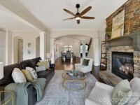 Stately custom brick and stone home nestled on a desirable cul-de-sac in sought-after Anniston Grove! Newly refinished hardwoods grace the main level, enhancing the home’s open and inviting floor plan. The beautifully updated, neutral Kitchen features freshly painted cabinetry, quartz countertops, a large center island, white tile backsplash, under-cabinet lighting, a Frigidaire 5-burner gas range, stainless dual ovens, and a convenient pot filler. The adjacent Family Room showcases a handsome stacked stone gas fireplace, ceiling fan, decorative columns, and newer sliding doors that fill the space with natural light. The main-level Primary Suite offers a custom tray ceiling with a fan and a peaceful retreat. A spacious office with a high ceiling, elegant white molding, and graceful arched entryways add character and sophistication throughout the main level. Upstairs, you’ll find four additional Bedrooms plus a versatile Bonus Room with French doors—offering ample space for everyone! Step outside to enjoy the fenced, flat backyard—ideal for entertaining on the deck or relaxing by the fire pit on the brick patio. Additional highlights include a 2-car and 1-car garage, custom wood front doors with decorative iron and glass (2023), two newer heat pumps (2023,) newer sliding glass doors (2025,) tankless water heater (2025) & full irrigation. This home is zoned for sought-after Weddington schools! Waverly shopping and dining is just a short drive away. Enjoy tranquil living in Anniston Grove!