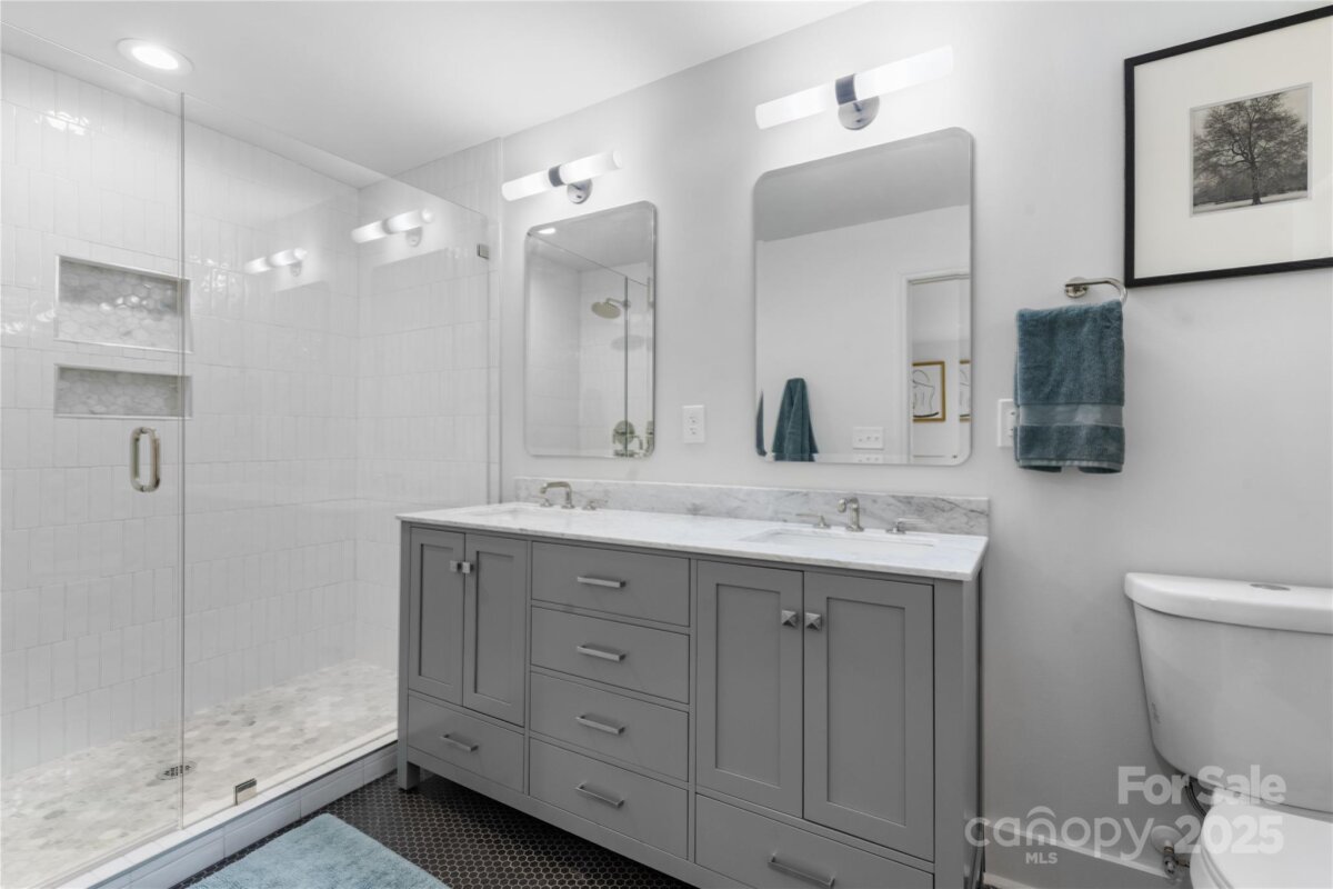 Full-brick ranch retreat nestled on a private, wooded, 0.91-acre lot— Less than 15 min to SouthPark & uptown Charlotte. Impeccably renovated home highlights over 2,500 SF of open-concept living space. Engineered hardwoods, fresh paint & modernized lighting. Designer chef’s kitchen features an abundance of custom cabinetry, sleek countertops, tile backsplash, custom wood range hood, and premium Café appliances. Cozy breakfast area provides the perfect setting for casual dining, while the expansive mudroom/pantry delivers unmatched storage. Living room, anchored by a wood-burning fireplace, perfect for entertaining guests. Primary suite boasts a fully upgraded ensuite bath with tile shower. Fully finished, walk-out basement provides a versatile flex space— Home gym, game room, movie room… Options are endless! Outdoors, enjoy a brand-new deck overlooking the oversized lot, surrounded by mature trees! MAJOR updates (2022-2024) include: Roof, HVAC, ductwork, water heater, plumbing, and electrical-- Permits pulled. Close proximity to Mason Wallace and McAlpine Creek Park— This home offers the perfect blend of tranquility and urban access. Eligible buyers can receive up to $7,500 in closing costs AND a 1% discount-point credit for an interest-rate buy down! Seller willing to provide concessions towards buyer's closing costs! Reach out to the listing agent for details!
