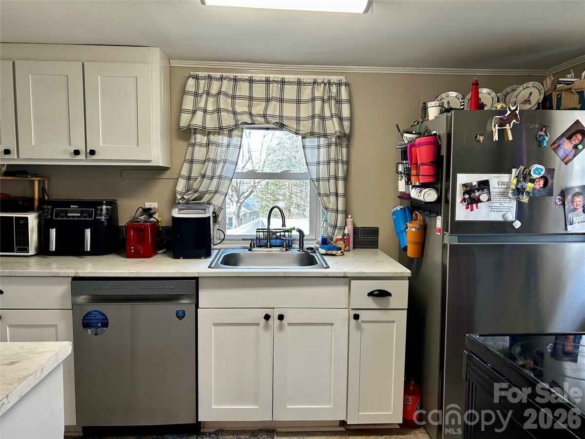 Charming home with a large covered front porch perfect for sipping lemonade and enjoying nature. Outside Lenoir but close to all city amenities. Energy efficient Mini Split units for heat/cooling. Newer dishwasher. Two bedrooms and full bath on main with another bedroom and a bonus room on the upper level. Note walls on upper level have eave storage. Fireplace has been sealed and is no longer in use.