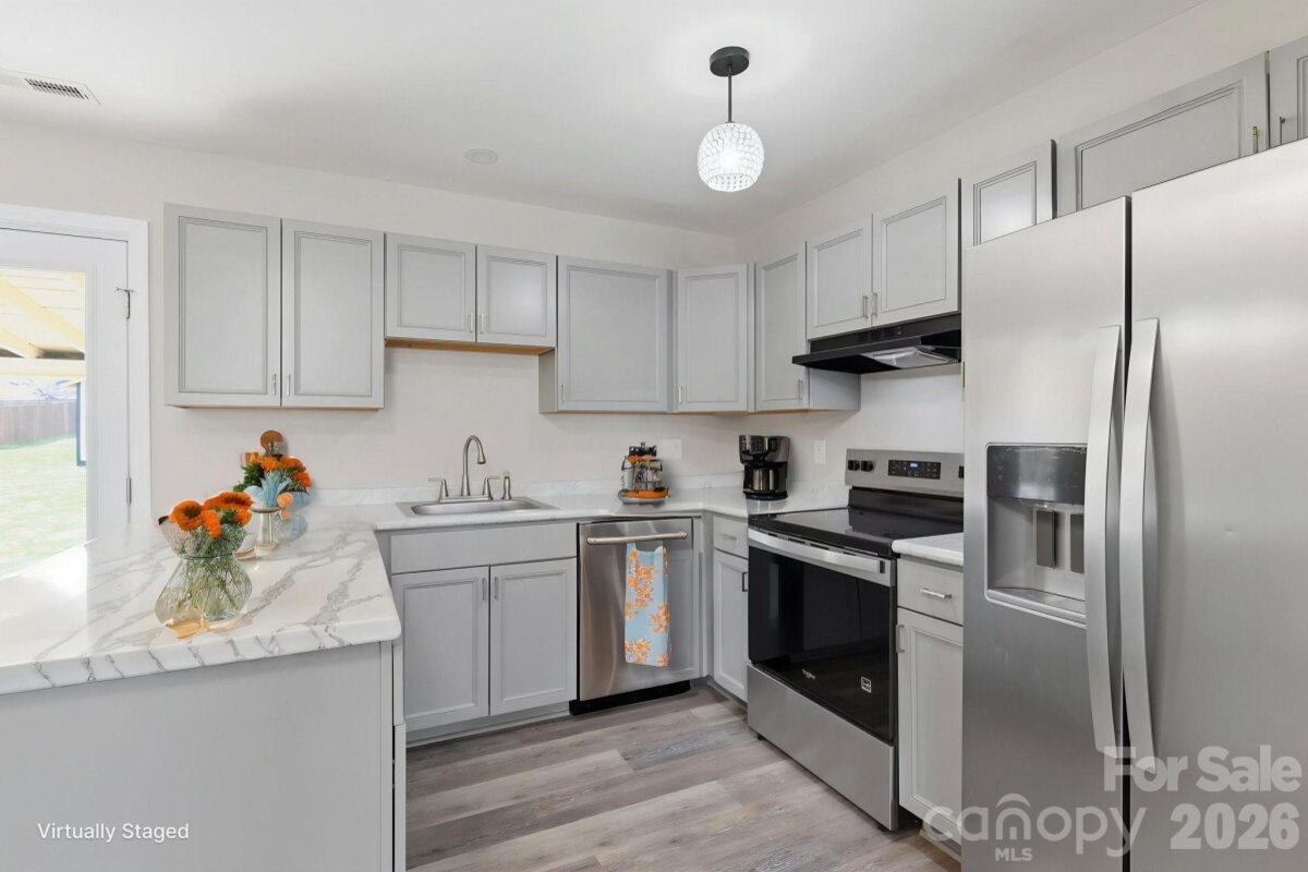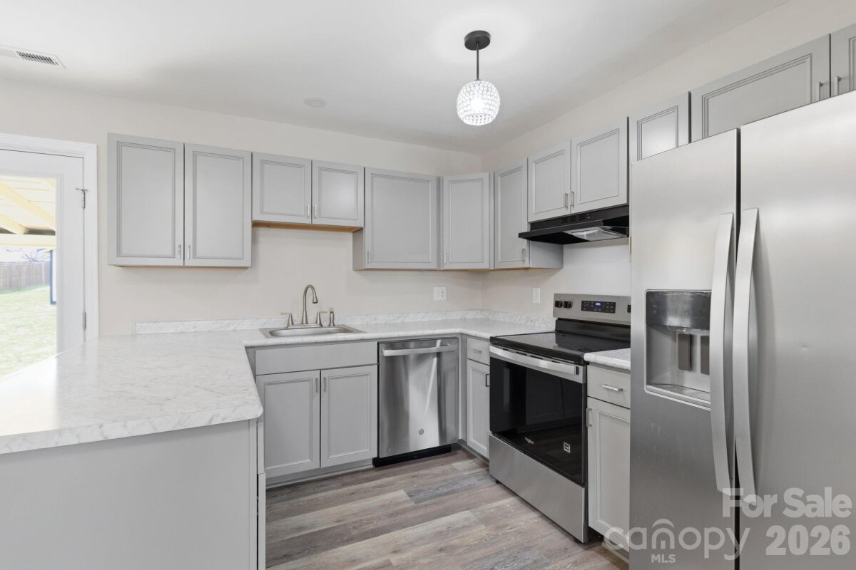 One-Level Living – Newly Remodeled with Spacious Lot & Workshop! Beautiful newly remodeled 3-bedroom, 2 full bath home offering convenient one-level living and a bright, open layout. The living room, kitchen, and dining area flow seamlessly together, creating an inviting space perfect for everyday living and entertaining. Enjoy relaxing on the back porch with a metal roof, where you can unwind and listen to the rain while overlooking the deep, spacious lot. Looking for a hobby shop? This property comes with a 16x22 shed with electricity, ideal for a workshop, hobbies, or additional storage. Other features include a brand new Trane heat pump with warranty, city water and easy access to grocery stores, shopping, and everyday conveniences, making this home both comfortable and practical. Don’t miss this move-in ready home with great outdoor space and functionality!