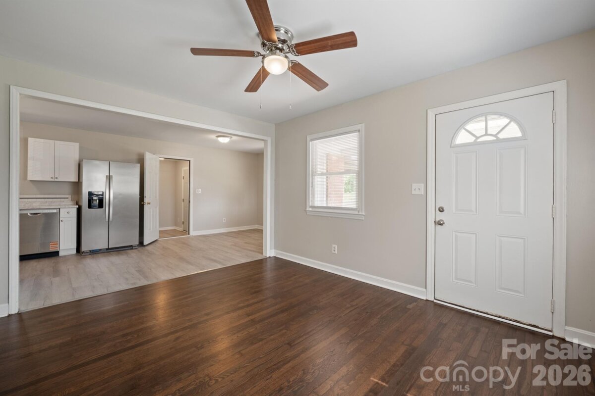 Charming Move in ready home located on quiet street. Home is practically brand new! Refinished hardwood floors with new flooring in the kitchen, bathroom and laundry room. New electric stove, microwave, dishwasher and hot water heater. New countertops in kitchen as well. Washer/dryer and refrigerator included with home. Fresh paint. Large shed with electric. This home is a must see! Agent is related to seller.