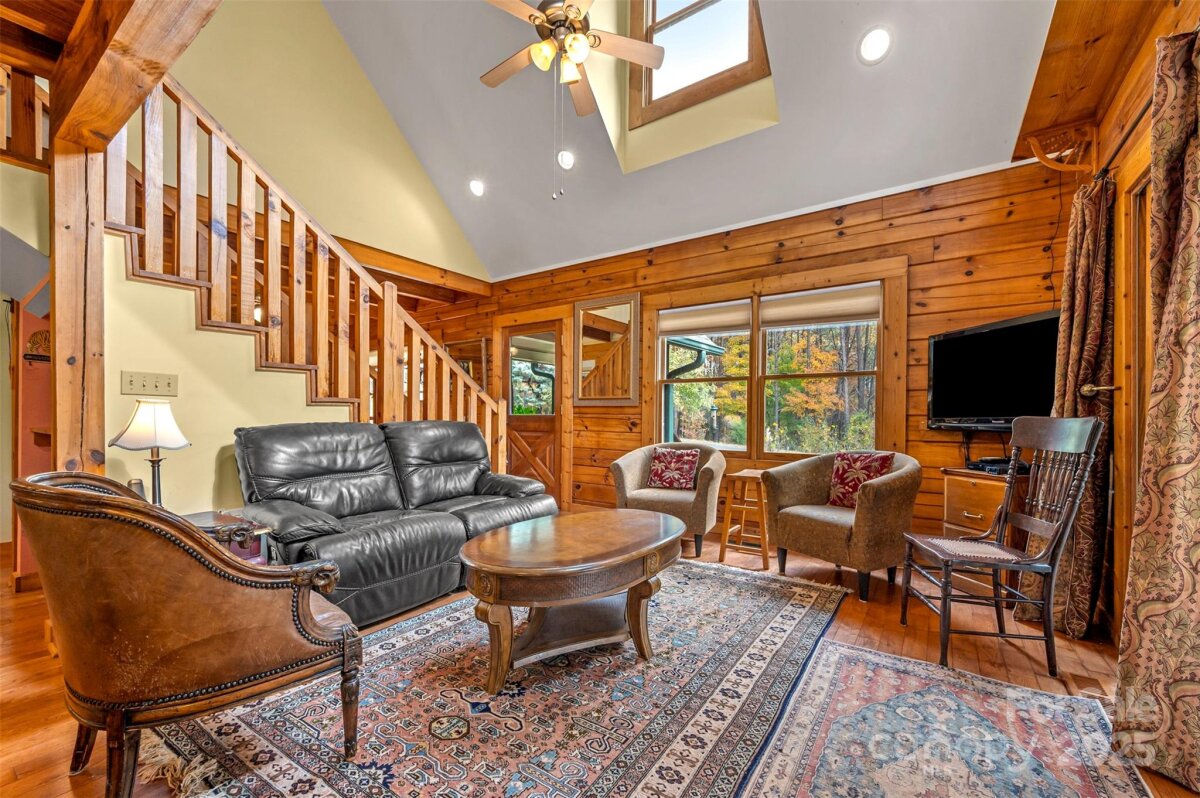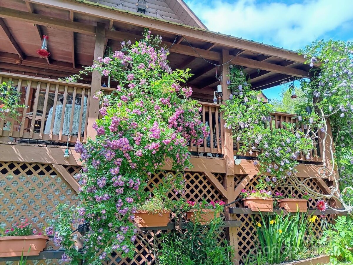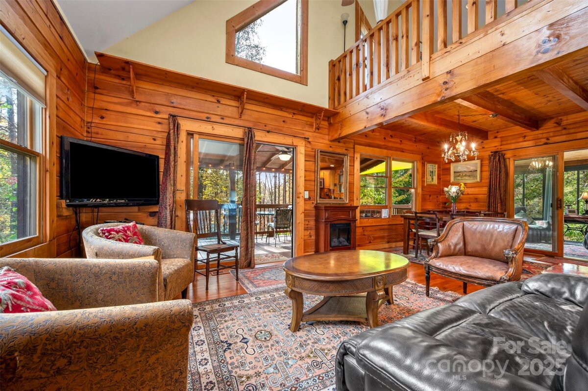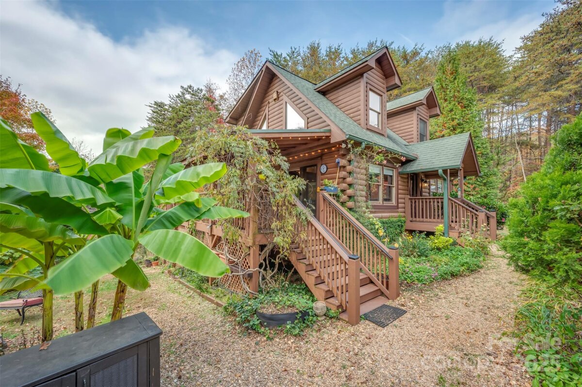 Welcome to 140 Shady Acres Lane, a charming log home in the gated community of South Mountain Peaks. This warm and inviting home features 1 bedroom on the main level, a spacious loft-style primary suite upstairs and a full kitchen. You’ll love the open-concept living area with the golden honey tones of real wood, a cozy electric fireplace, wood floors, an open loft, and sliding doors that open to an enclosed porch - overlooking a gardener’s delight. Enjoy plantings you might see in an English Cottage Garden. The property is on the lee side of the mountain in a gentle valley with a creek bordering the back. It offers 1.13 acres of privacy with a fire pit and a gravel drive, perfect for easy mountain living. Enjoy paved roads, underground utilities, and community security within minutes of Cherry Mountain, South Mountains State Park, and Yogi Bear’s Jellystone Park. Whether you’re looking for a weekend getaway or a full-time retreat, this cabin has everything you need to unwind in the foothills.