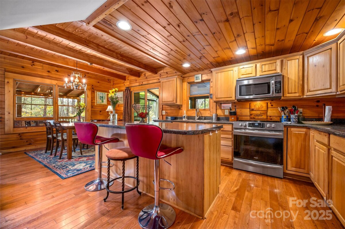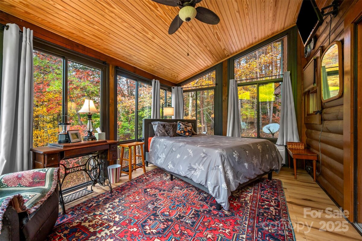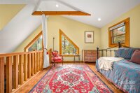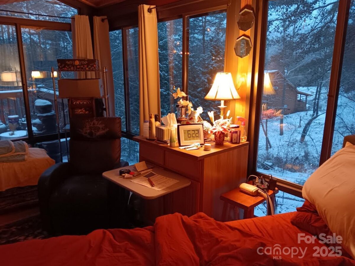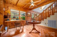 Welcome to 140 Shady Acres Lane, a charming log home in the gated community of South Mountain Peaks. This warm and inviting home features 1 bedroom on the main level, a spacious loft-style primary suite upstairs and a full kitchen. You’ll love the open-concept living area with the golden honey tones of real wood, a cozy electric fireplace, wood floors, an open loft, and sliding doors that open to an enclosed porch - overlooking a gardener’s delight. Enjoy plantings you might see in an English Cottage Garden. The property is on the lee side of the mountain in a gentle valley with a creek bordering the back. It offers 1.13 acres of privacy with a fire pit and a gravel drive, perfect for easy mountain living. Enjoy paved roads, underground utilities, and community security within minutes of Cherry Mountain, South Mountains State Park, and Yogi Bear’s Jellystone Park. Whether you’re looking for a weekend getaway or a full-time retreat, this cabin has everything you need to unwind in the foothills.