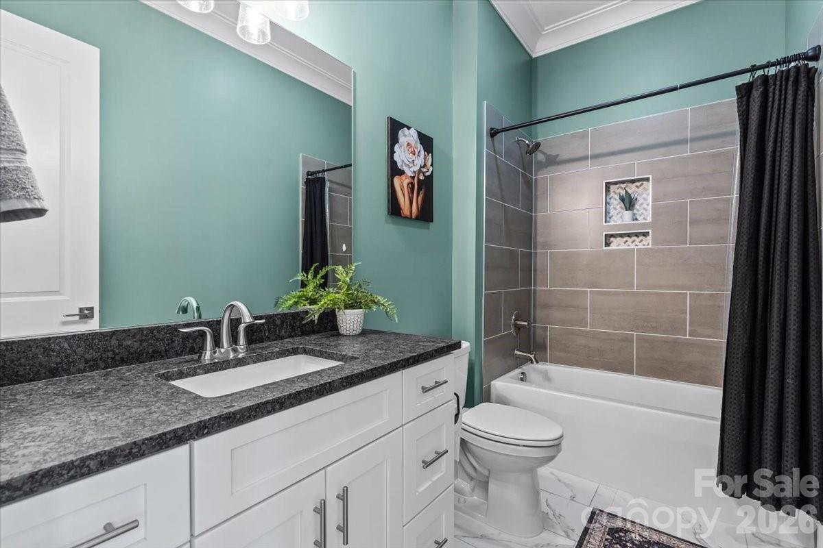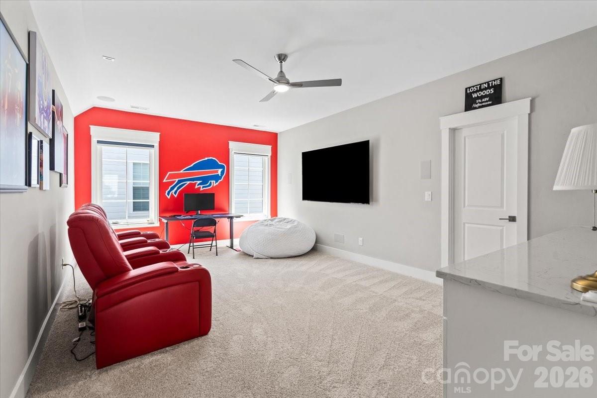 Welcome home to the desirable Palisades Golf Course community in Charlotte. This newer construction home offers 4 bedrooms, 3 bathrooms, and over 2,700 square feet of thoughtfully designed living space with elevated finishes and customizations throughout. Enjoy close proximity to resort style amenities including a tennis complex, pool with slide, playground, courtyard, and fitness center with yoga studio. Inside, the open concept layout is filled with natural light and ideal for everyday living and entertaining. The spacious kitchen and living area flow seamlessly into a three season room overlooking the patio and putting green. The home features generously sized bedrooms, including a main level primary suite with a spacious bath, high ceilings, and custom trim details. Upstairs, a large bonus room offers flexible space for a media room, office, or playroom. Conveniently located near Lake Wylie, shopping, dining, and all that the Palisades community has to offer.