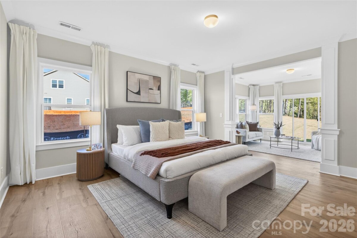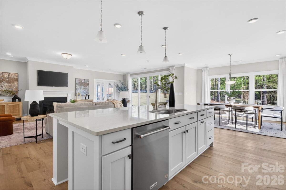 The Brodrick at Harbor Pointe at Edgewater—offers refined living with a 2-car garage. This home boasts private study, well-appointed kitchen with quartz counters, tile backsplash, gas range, vented hood, and modern finishes. The great room features a gas burning fireplace. The main level-primary suite features a separate sitting room plus ensuite with walk-in shower. An additional bedroom, full bath, and laundry complete the main floor. Upstairs offers a loft, additional bedroom, and full bath. Home features many upgraded options, including 12 ft. glass panel sliding doors, window galore, Enjoy resort-style amenities including golf, boating, and trails, with fine dining, racquet sports, and retail.