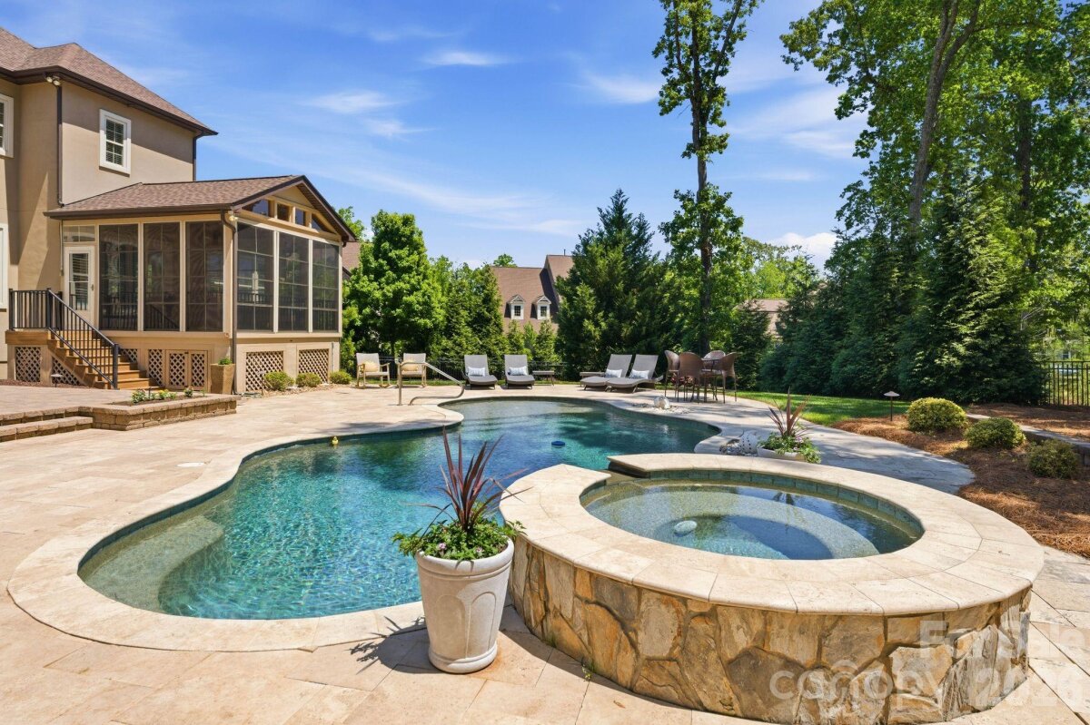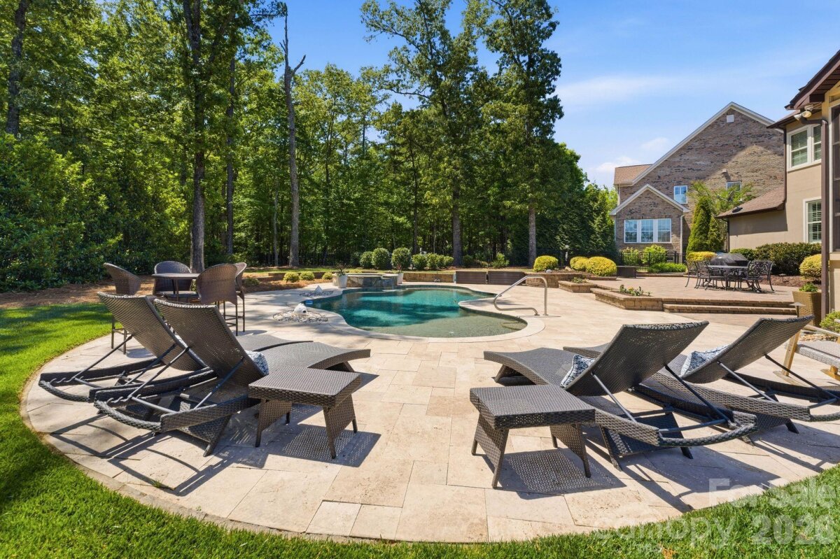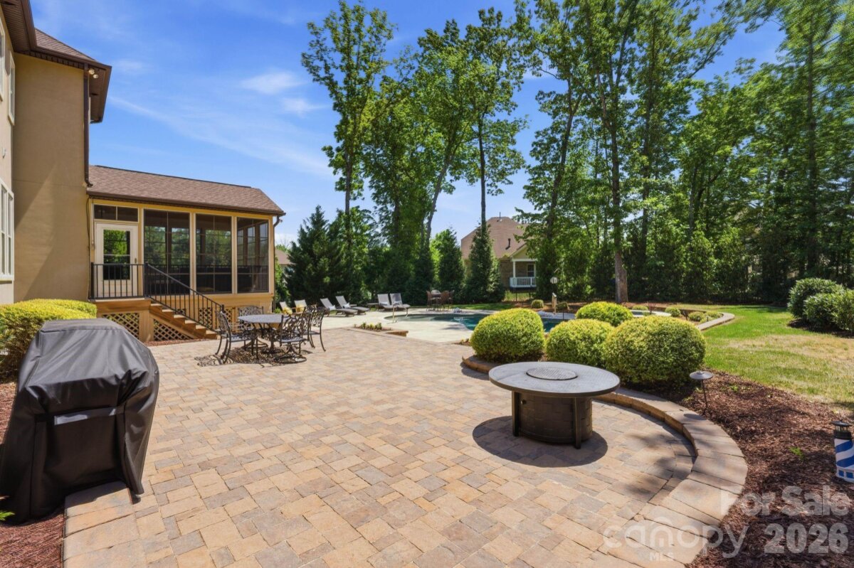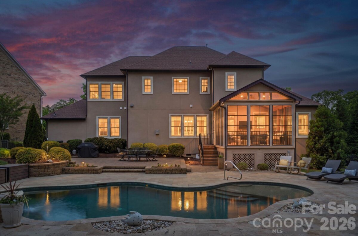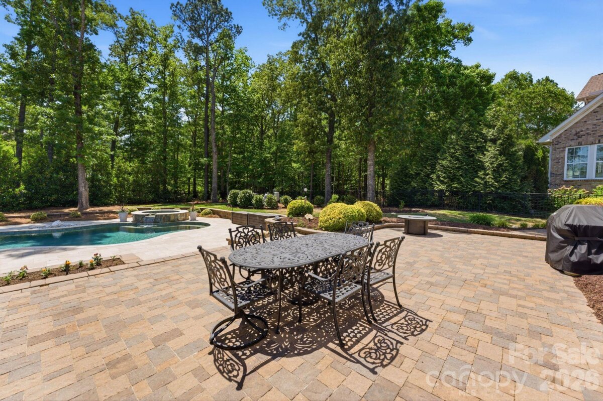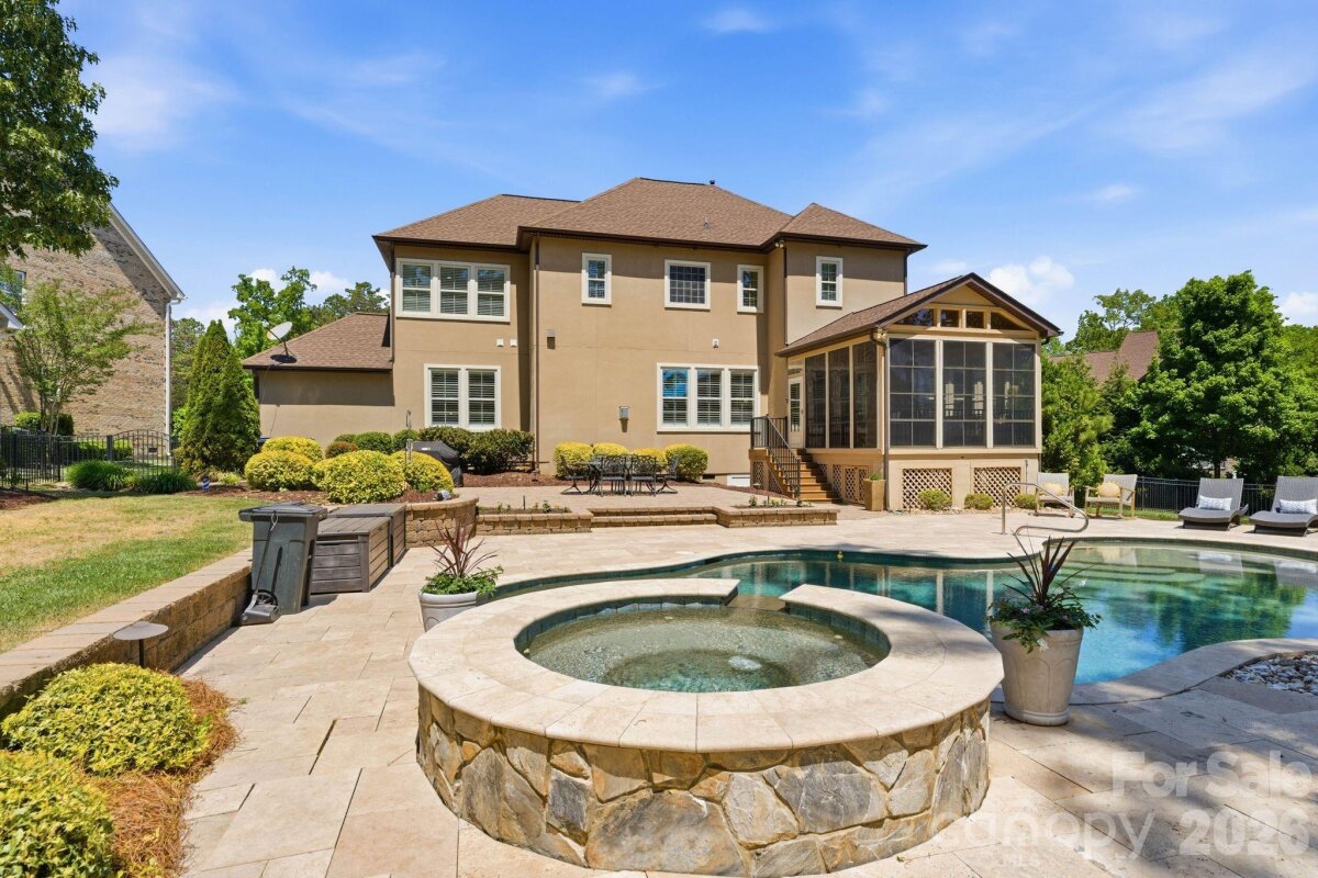 Coming Soon. Positioned on a 0.50-acre corner homesite in Weddington Trace, 1414 Smoketree Court presents a six-bedroom residence in one of Waxhaw's established communities, offering a main level guest suite, open concept living and a well executed indoor outdoor design. A welcoming foyer introduces hardwood flooring and custom plantation shutters that extend throughout the main level, reinforcing both design continuity and natural light control. To the left, the dining room is defined by a tray ceiling, while the staircase to the right leads to an upper level princess landing overlooking the entry, contributing to the home’s open architectural feel. A mudroom and drop zone connect directly to the 3 car garage, creating a functional transition for daily living. The family room is anchored by a gas fireplace and flows seamlessly into the kitchen, supporting connectivity across the primary living spaces. The kitchen is designed with both scale and efficiency in mind, featuring a substantial center island, double wall ovens, a five burner gas range and a butler’s pantry with built-ins and an ice maker, aligning with expectations for a luxury kitchen in today’s market. A sunroom just off the dining area introduces natural light and extends the living footprint. The main level guest suite, currently utilized as an office, offers flexibility for multigenerational living or remote work and includes a rear wall of modular office cabinetry with integrated drawer storage, allowing for adaptable workspace configuration. A full bath with hall access serves this space, supporting both guest accommodations and everyday functionality. Each secondary bedroom is well proportioned, providing separation and comfort. Two bedrooms are connected by a Jack and Jill full bath, while an additional bedroom features a private en suite bath. The primary suite is scaled for comfort and includes a tray ceiling, crown molding and a walk-in closet with built-ins. The en suite bath is appointed with dual vanities and a garden tub. An upper-level bonus room offers flexibility as a media room, additional bedroom or multipurpose space depending on lifestyle needs. Outdoor living is a defining element of the property. A three-season porch transitions to a dedicated entertaining area, where a pebble finish saltwater pool and Jacuzzi position the home among Waxhaw properties offering private outdoor living and resort style amenities. Community amenities include a junior Olympic swimming pool, splash pool, tennis courts, pickleball courts, basketball court, walking trails, pond and dock. The property’s corner positioning and proximity to a natural pocket park across the street contribute to the overall setting, privacy and neighborhood appeal. Conveniently located approximately 6 miles from Interstate 485, the home provides access to regional connectivity while maintaining a residential setting. Everyday conveniences, including Publix at Marvin Gardens, are located approximately 2 miles away. Rea Farms and Waverly are both within approximately 5 miles, offering dining, retail and lifestyle services. Several private country clubs and golf courses are also located within a short drive. The property is currently zoned for Cuthbertson schools. Buyers are encouraged to verify school assignments.
