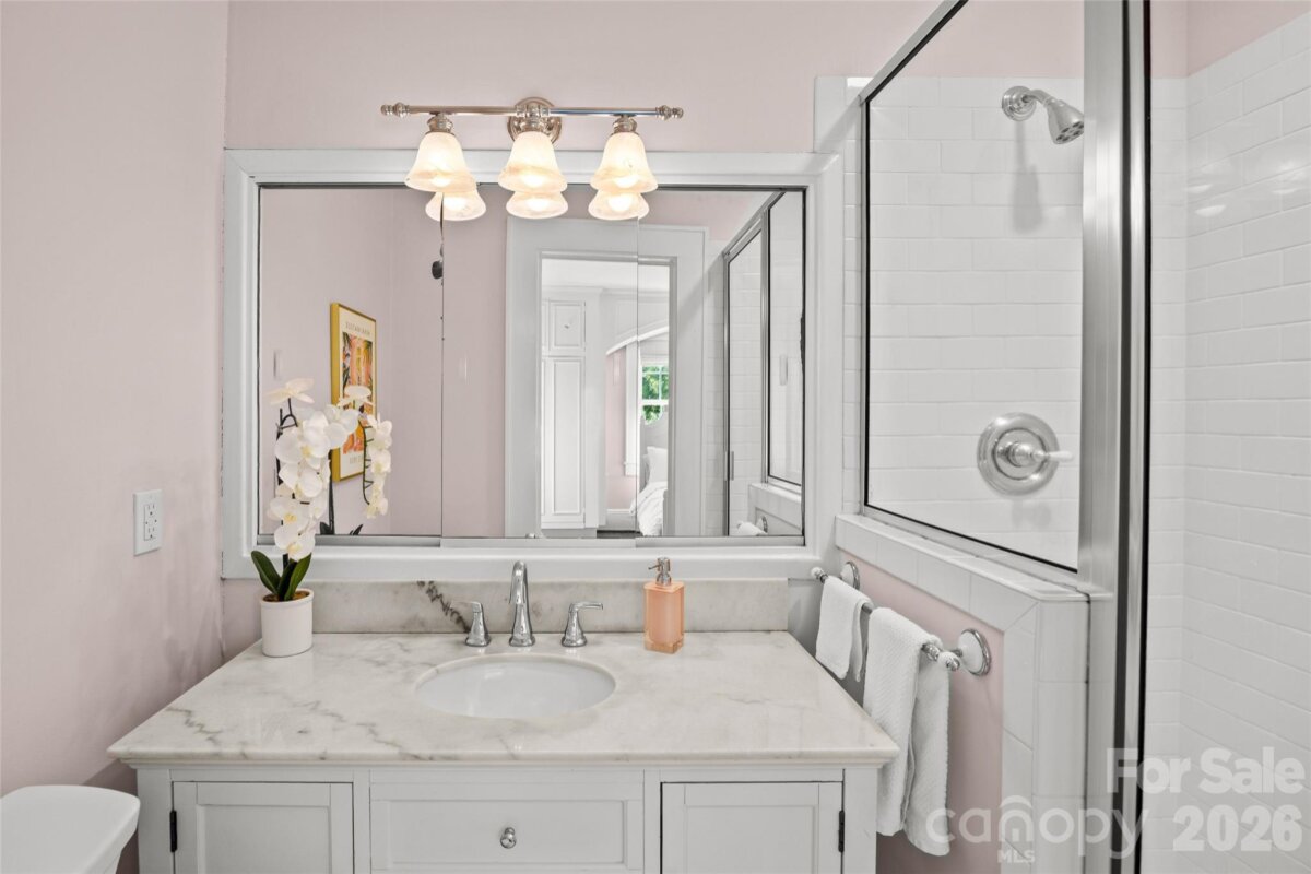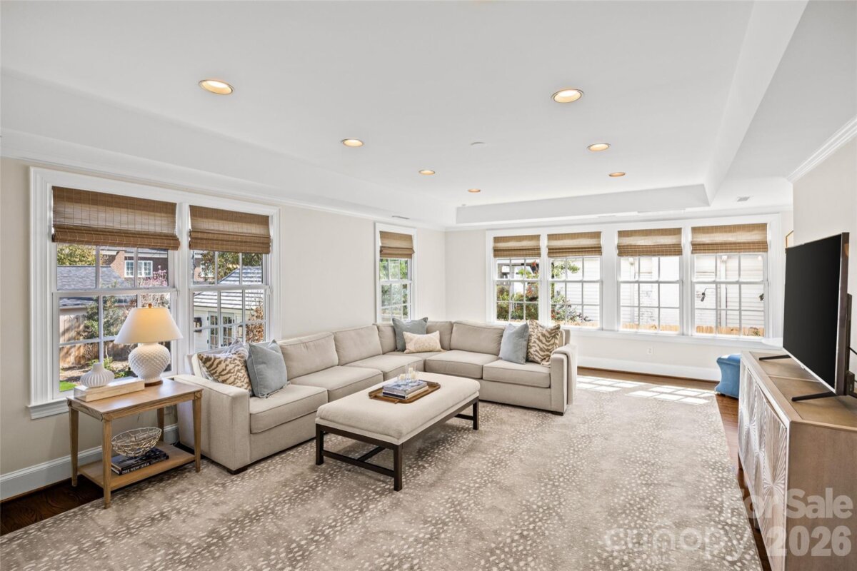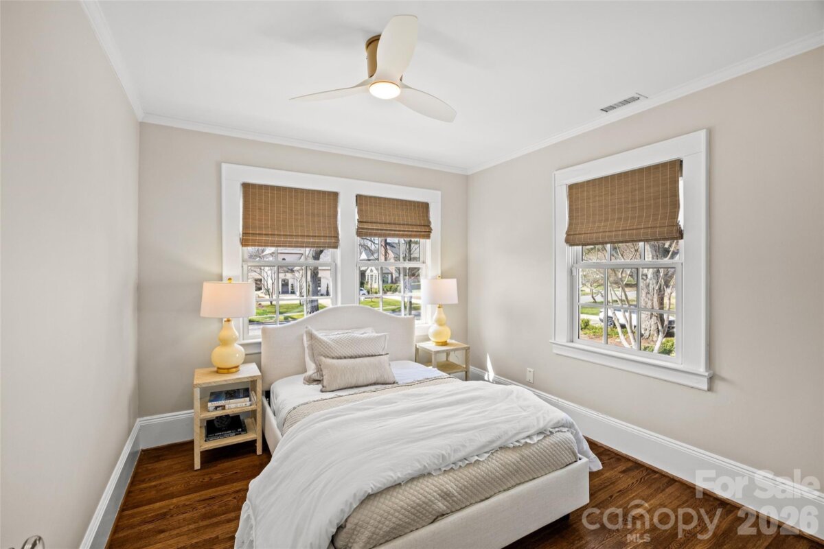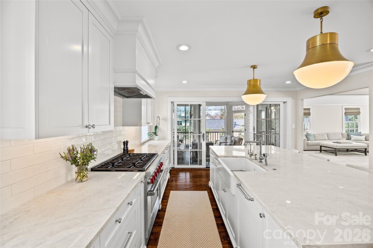 A masterful renovation, this home exudes timeless appeal through classic design elements with modern updates for today's lifestyle. Entertain across three living spaces with an open kitchen/breakfast/family room leading out to a screened in porch and turf yard complete with hardscape patio and Hillbrook garden house. Chef's kitchen includes Subzero french door refrigerator/freezer and a 6-burner gas Wolf range with oversized eat-in island and sunny breakfast area. The renovated primary suite is a personal oasis with sitting room and attached "nanny suite" currently being used as a home gym with additional full bath. Three additional bedrooms and two full bathrooms complete the second floor. The third floor walk-up bonus/attic is fully finished with an attached full bathroom. No stone was unturned on this home including: tankless water heater, sealed crawl space, new roof and gutters, all new HVAC systems, new windows and doors, vented gas logs, and more. Too many details to list, see attached Features Sheet. Where exceptional updates meet timeless charm — a truly standout residence in one of Charlotte's most coveted neighborhoods.