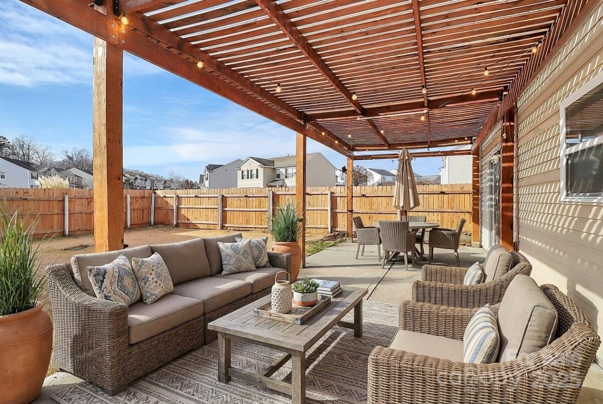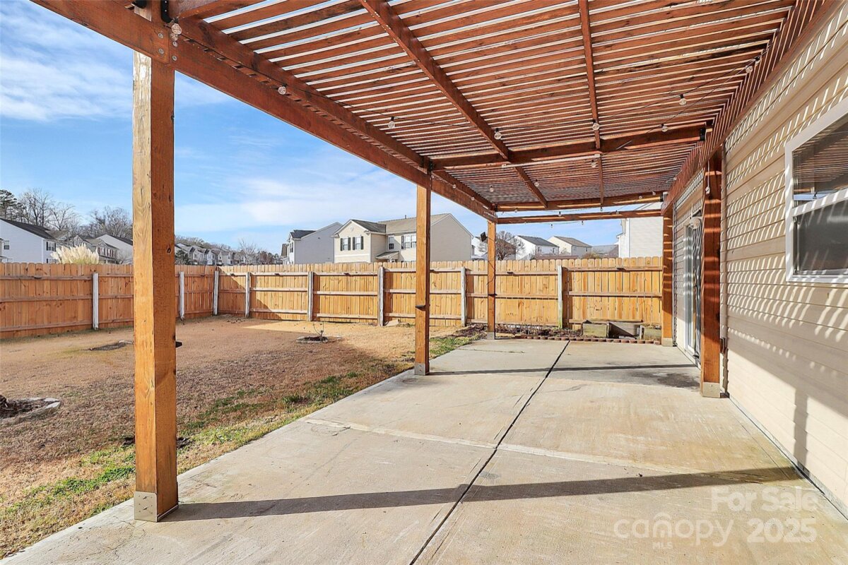 Discover this beautifully updated, turnkey home in one of Cabarrus County’s top-rated school zones! Step inside to find stunning wood floors flowing throughout both levels, complemented by fresh paint and thoughtful upgrades at every turn. The gourmet kitchen features quartz countertops, stainless steel appliances, a stylish tile backsplash, deep single-basin sink, soft-close cabinetry, and a walk-in pantry—perfect for everyday living and entertaining. A convenient guest bedroom is located on the main floor, while the primary suite offers a generous walk-in closet and updated bathroom finishes. Additional highlights include a bonus room, upgraded bathrooms, Nest thermostat, architectural shingle roof, and Trane HVAC for peace of mind. Enjoy outdoor living on the extended patio with pergola, overlooking the fenced, flatbackyard—ideal for relaxing or hosting. Located in a rent-friendly neighborhood with fantastic amenities including a pool and playground. Close to shopping, dining, interstate access, and everything you need. Truly move-in ready!