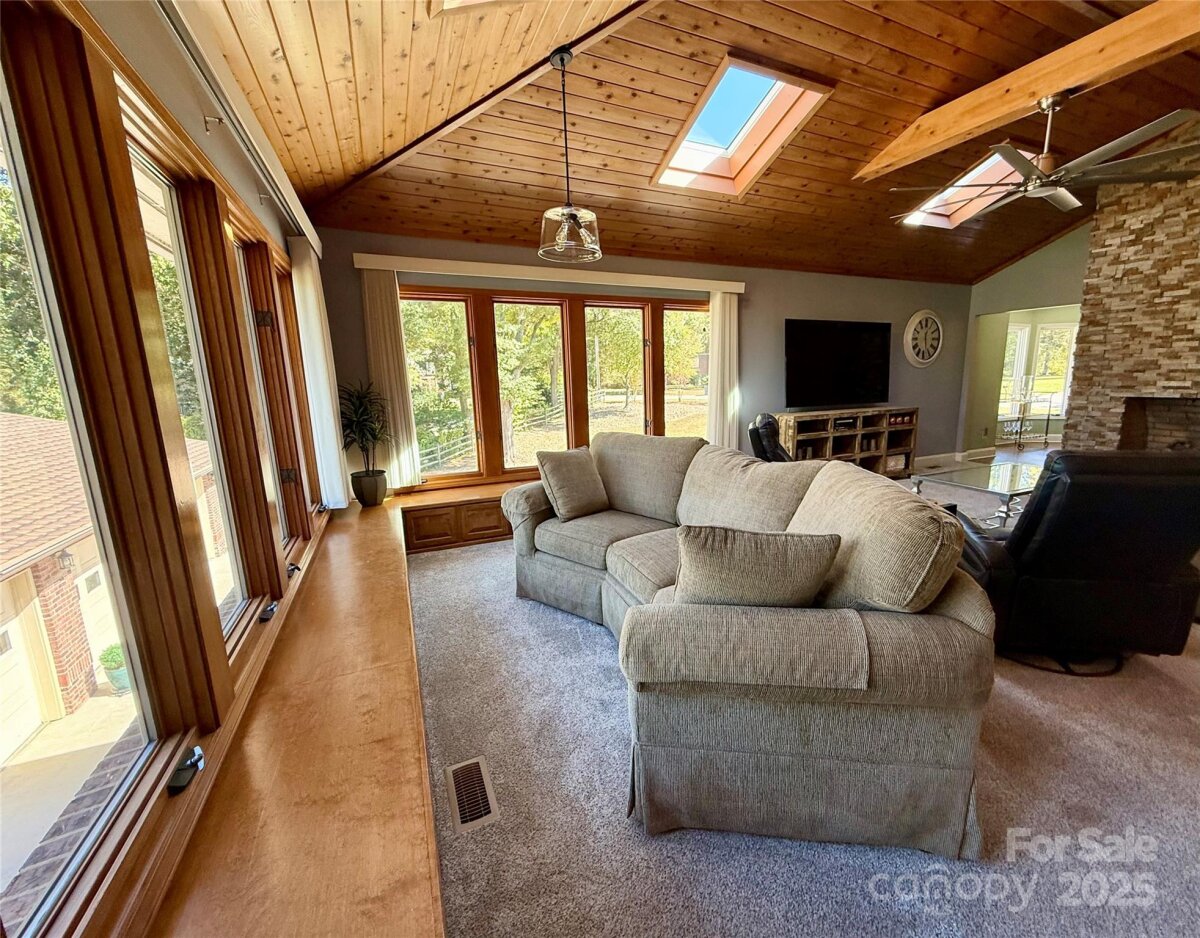 Welcome to this extraordinary all-brick home, perfectly situated on the lush fairways of the prestigious Pine Island Country Club in Charlotte, North Carolina. Designed for those who appreciate craftsmanship, comfort, and convenience, this stunning property combines timeless architectural beauty with modern upgrades and thoughtful details throughout. Car enthusiasts and collectors will fall in love with the garage space alone — an attached 3-car garage plus an additional 3-car detached garage, currently outfitted with 3 professional lifts, allowing room for up to six vehicles. Whether you collect classic cars, need a dedicated workshop, or simply want the ultimate space for your hobbies, this home delivers versatility and rare functionality in a luxury setting. Step inside to discover a beautifully renovated interior that feels both inviting and elegant. From the moment you enter, soaring vaulted pine ceilings and new skylights fill the main living area with natural light and warmth. Every major component of this home has been replaced or upgraded — including a new roof, HVAC system, and fencing — so you can enjoy peace of mind and move-in-ready confidence. The primary suite on the main level is a true retreat. Completely redesigned, the luxurious bath features an oversized spa-inspired shower, a massive soaking tub, double vanities, and high-end finishes throughout. Two additional bedrooms are located on the main floor, offering plenty of flexibility for family, guests, or office space. All bathrooms in the home have been fully renovated, showcasing modern style and attention to detail. The lower level of this home is equally impressive, offering a full living space that can easily serve as an in-law suite, guest quarters, or multi-generational living area. Here, you’ll find another bedroom, a full bathroom, a spacious living room, and a kitchenette — all thoughtfully designed for comfort and privacy. A new chair lift provides effortless access between levels, ensuring the home accommodates every lifestyle stage. Two large storage rooms complete the lower level, providing ample space to organize seasonal items, hobby supplies, or keepsakes. Outside, the property continues to shine. The backyard overlooks the manicured golf course greens, offering a peaceful backdrop for morning coffee or evening gatherings. Enjoy the tranquil sounds of nature, the rolling fairways, and the feeling of community that only comes with country club living. Life in Pine Island Country Club means you’ll have access to one of Charlotte’s premier golf and social destinations. Membership opportunities provide access to championship golf, a resort-style pool, fine dining, and a vibrant calendar of community events. Located just minutes from Uptown Charlotte, the airport, and major highways, this home offers the perfect blend of privacy, luxury, and convenience. Whether you’re looking for your forever home, a place to entertain, or a retreat where you can truly relax, this remarkable golf course property delivers on every level. Meticulously maintained and beautifully upgraded, it represents the best of Charlotte luxury living in one of the area’s most desirable neighborhoods.