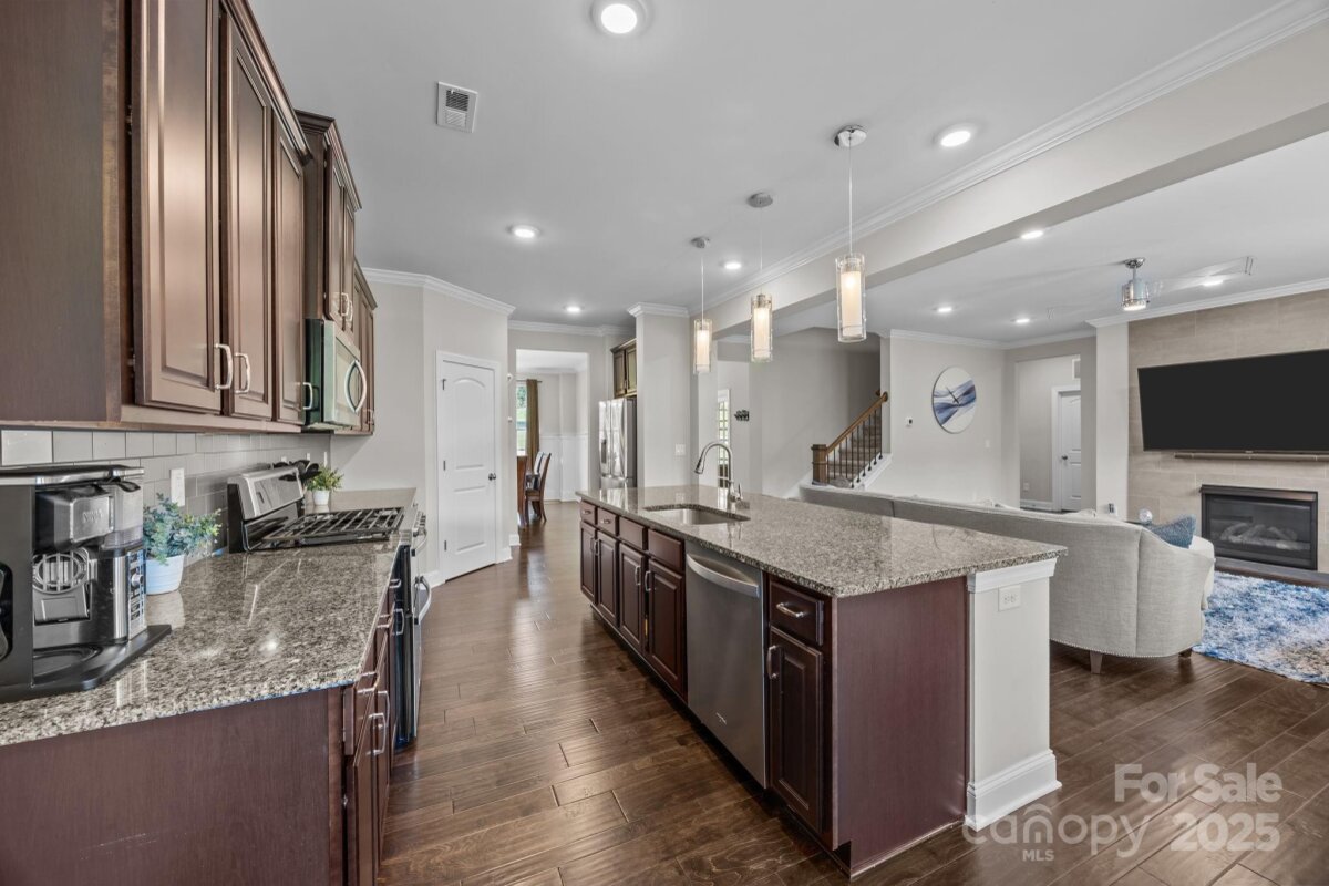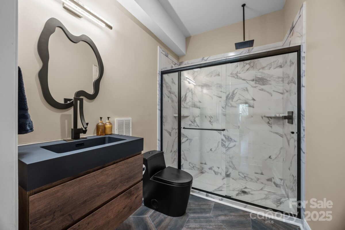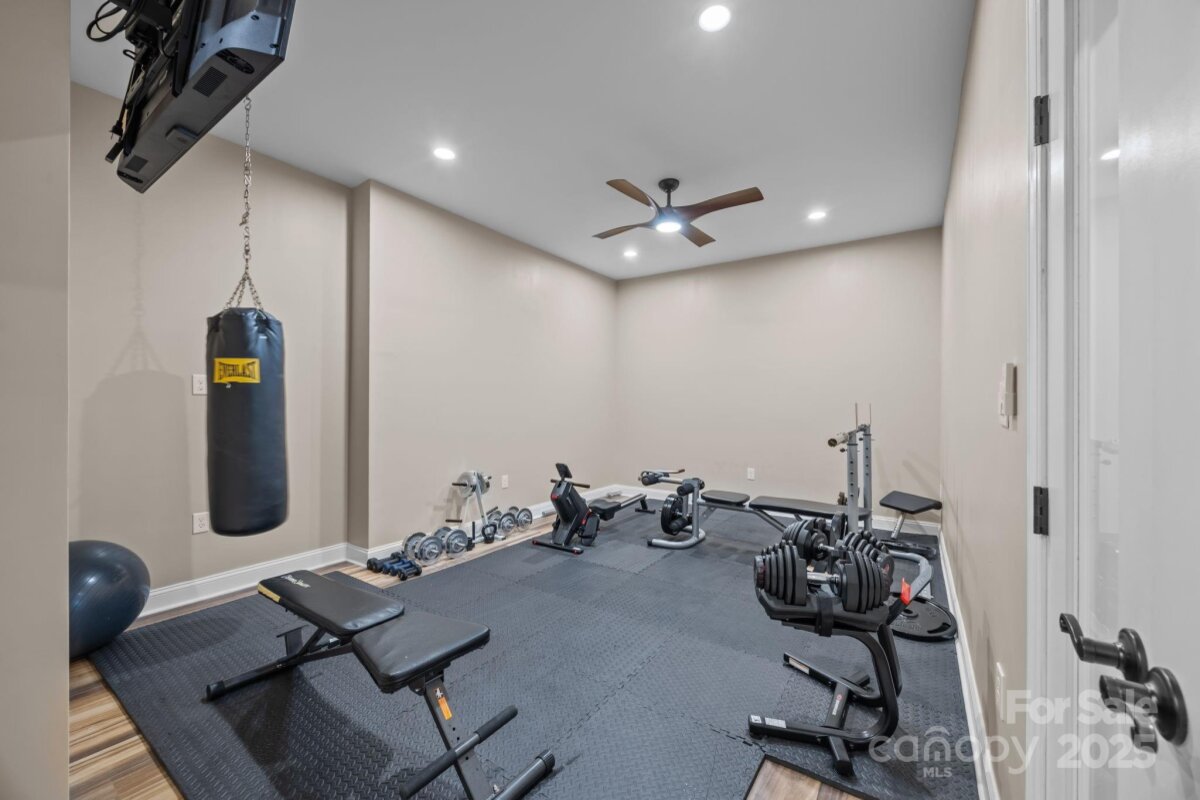 Welcome home to this Retreat! Rare opportunity to own a 5 bedroom home with a complete permitted finished basement with a full bath with a zero entry shower, office, recreation room with wet bar area, custom wine closet with newly installed racks (not pictured), great room for family movie night and an oversize gym room area that can house a lot of equipment. This home has a beautiful covered front porch with room to sit. Entering the main level you have your office with french doors to the left and large dining room to the right leading to the large oversized kitchen that is open to the great room with added custom shelving and fireplace surround. This level also has a really nice oversized laundry room, drop zone, full bath and main floor guest fifth bedroom. The second floor has an oversized primary bedroom with a sitting area, massive closet and beautiful bath, two additional bedrooms joined by a jack and jill bath and fourth bedroom with its own private bath. This home has so much versatility for the growing or multi generational families. This home overlooks a large tree-lined rear yard. The 5 bedroom septic system is in the front leaving plenty of room for a future pool in the back. Since owning this home they have continuously made improvements over the years by extending the rear deck and patio with hookups for a hot tub, finishing the basement, added the upgraded lighting and fixtures, closed in the open area in the primary bedroom to make a nice private sitting area, upgraded the surround around the fireplace and added custom bookshelves plus a Culligan soft water system. Hollybrook is a well established one plus acre 44 completed home community. This neighborhood is in the county, not in the city of Mooresville, but only 10 minutes from downtown and the excitement it has to offer, 5 minutes to the new Publix, 20 minutes to Mooresville Consumers Square and Lake Norman, 40 minutes to the airport or uptown Charlotte, Why wait for new construction when you can be in your new home in 30 to 45 days.