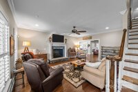 Welcome to 141 Yellow Jacket Circle! Nestled in the quaint Craftsman Pointe community with NO HOA. This beautifully maintained home offers the perfect blend of comfort, style and space. Enjoy Southern charm from the wrap-around covered front porch with seasonal water views, relax year-round on the screened-in side porch or simply unwind in a secluded backyard. Inside, hardwood floors, a cozy fireplace, and gourmet kitchen create the ideal setting for gatherings The main-level primary en-suite is a true retreat, showcasing a soaking tub and tiled shower, beautifully renovated in 2019. A functional laundry room with a full bath adds everyday convenience. Upstairs, escape to the expansive rec room, perfect for lounging, gaming, or entertaining guests. Additional highlights include a new roof and exterior paint, full-yard irrigation system, plantation shutters, and a tankless water heater.