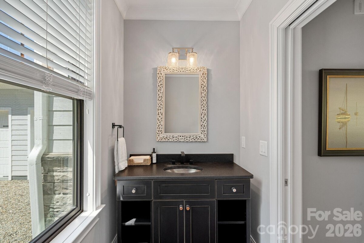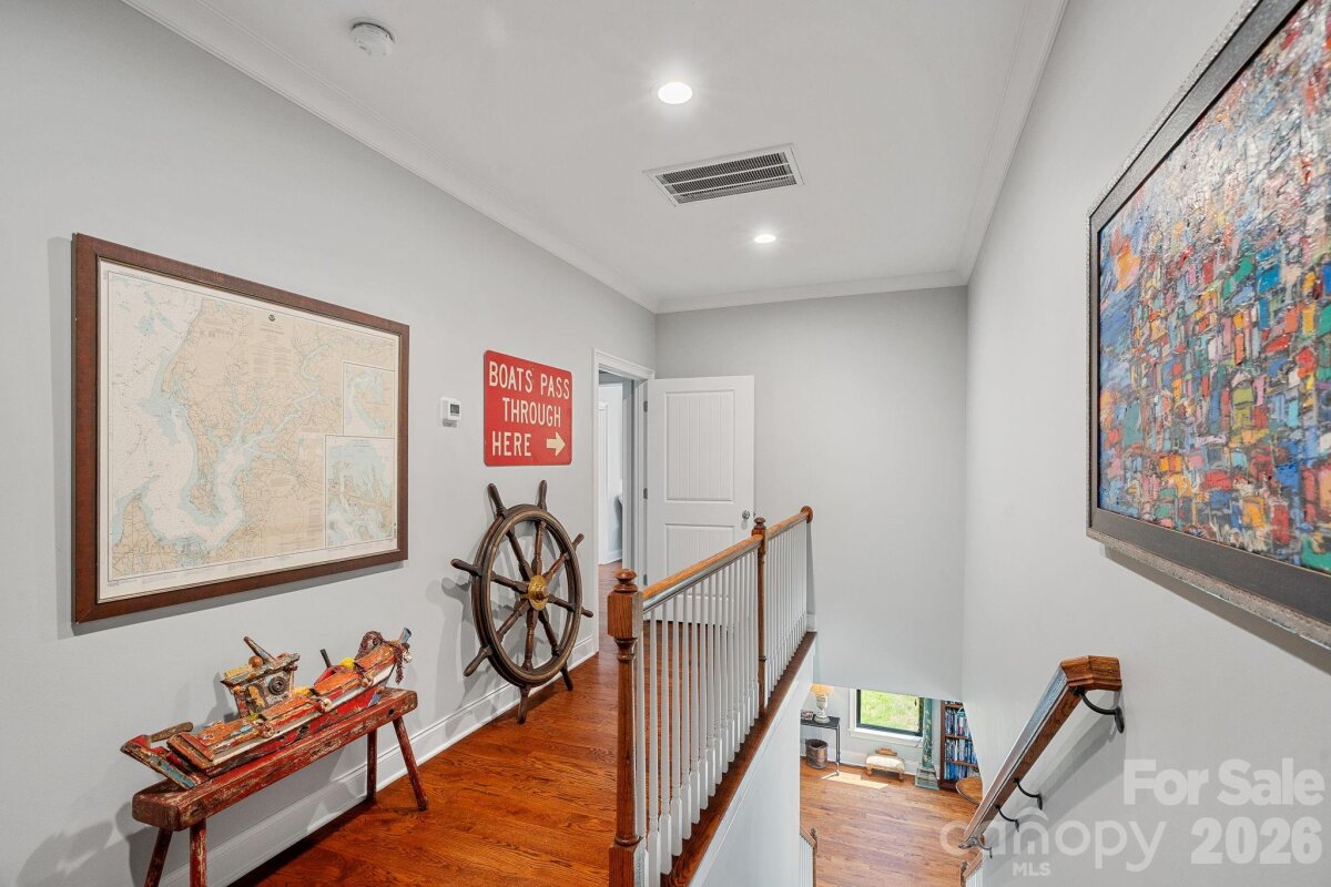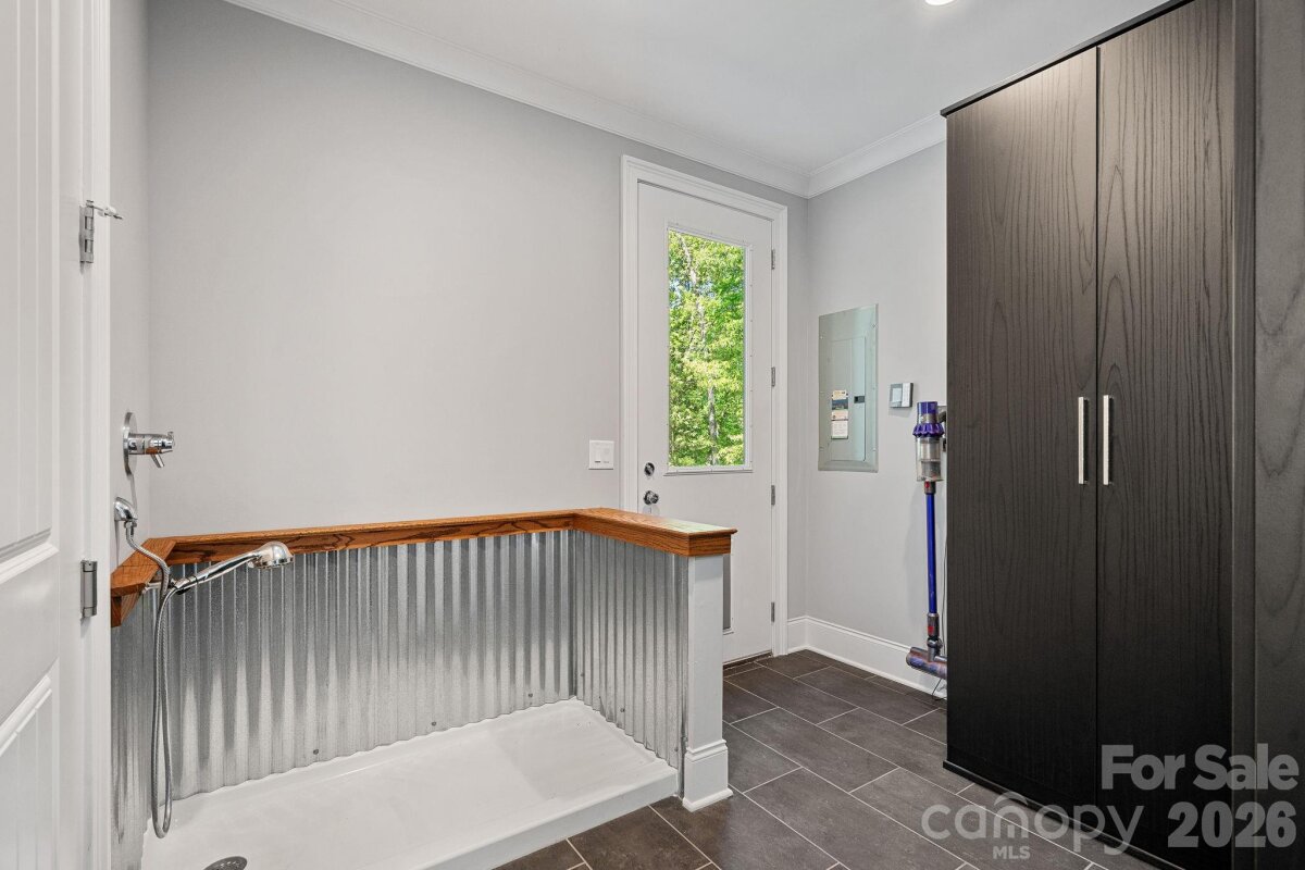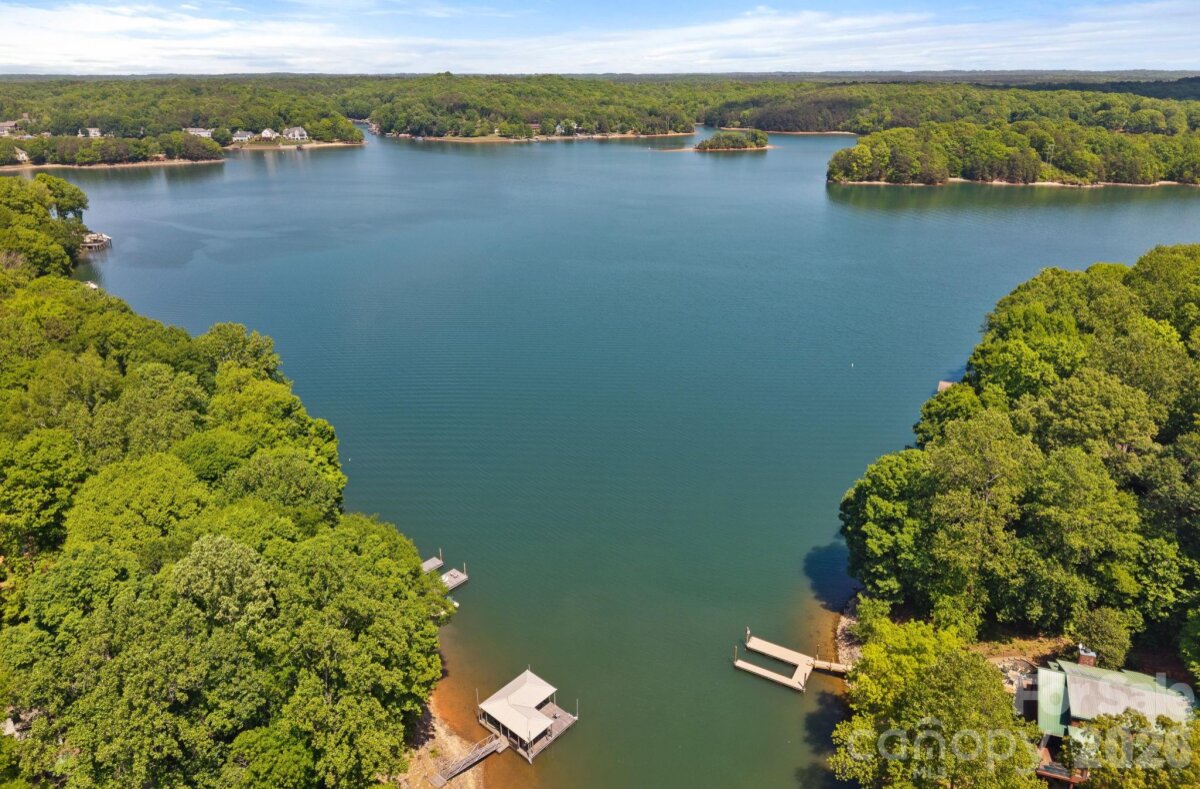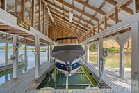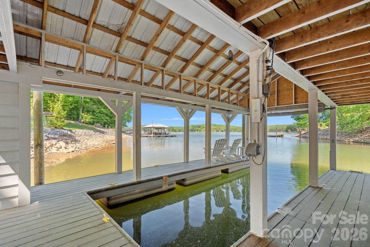 Experience the perfect blend of modern finishes with an easy lakefront lifestyle at 1420 Roundstone Road. This 2019 custom-built masterpiece sits on a sprawling 1.14-acre lot with no HOA, offering a rare sense of freedom on the shores of Lake Norman. From the moment you pull up the expansive U-shaped driveway, the home’s cool, contemporary vibe is undeniable. Inside, the open-concept living area features stunning solid hardwood floors and soaring floor-to-ceiling glass sliders that frame far-reaching water views. The chef-inspired kitchen is a true centerpiece, with custom soft-close cabinetry, sleek quartz countertops, a decorative hood over the gas range, and premium Frigidaire Gallery appliances. Whether you’re prepping at the coffee station or cleaning up in the farmhouse sink that overlooks the lake, the design is as functional as it is beautiful. The primary suite serves as a sanctuary with bright windows and a custom walk-in closet. The attached ensuite is a showstopper, featuring a large vanity with dual sinks and a zero-entry shower. Practicality meets luxury throughout the home with a dedicated dog-washing station for your furry friends, a quiet small office tucked off the kitchen, and a walk-in pantry for ultimate storage. For total peace of mind, the property is equipped with a whole-home Generac generator, an approximately 900 sq ft epoxied floor garage, a water softener system, and walk-in attic that handles all your storage needs with ease. Outdoor living is where this property continues to shine. Step out onto the covered back deck, finished with durable Trex flooring, to enjoy the breeze or head down to the water’s edge. The covered boathouse is equipped with electricity, storage closets, two boat slips—one featuring a newer lift—and two jet ski ramp floats. The dock area was recently dredged by Lancaster Custom Docks. Whether you’re looking for high-energy lake recreation or a spot to relax in the lakeside sitting area, this spectacular home delivers the ultimate Lake Norman lifestyle.
