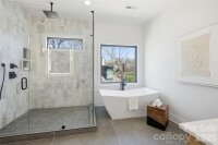 A fresh take on modern living, this stunning new home sits on an oversized lot with peaceful pond views in one of Charlotte’s most desirable neighborhoods. The setting offers a rare mix of privacy and space, with plenty of room to create your dream outdoor retreat. Designed to balance privacy with exceptional livability, the property offers generous outdoor space—perfectly suited for a future pool and a variety of entertaining possibilities. Spanning approximately 5,500 square feet, the thoughtfully designed floor plan flows effortlessly, creating an inviting atmosphere ideal for both everyday living and hosting. Dramatic vaulted ceilings, premium appliances, a striking Isokern fireplace, and a dedicated wine cellar elevate the home’s modern sophistication. Outside you will enjoy multiple covered and open-air spaces that make indoor-outdoor living feel natural and easy—perfect for everything from quiet mornings to lively gatherings. All of this is set in an unbeatable in-town location, close to top schools, Uptown, great restaurants, shopping, and greenways. An optional elevator adds flexibility for the future, with the added possibility for future owners to access from Wrenwood Lane.